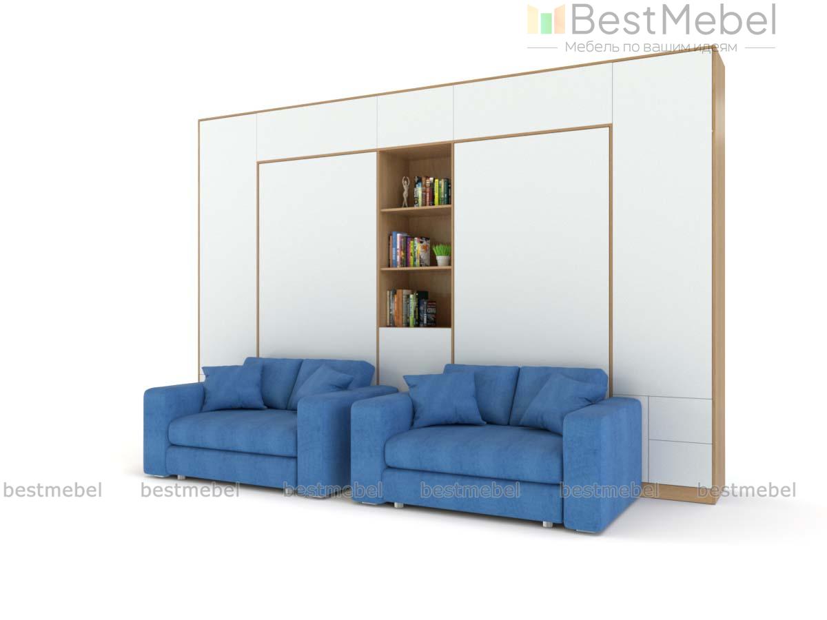 Шкаф-кровать Рубин Дуо BMS воплощает современный подход к организации пространства. Многофункциональная композиция, объединившая удобную систему хранения, зону отдыха и два полноценных спальных места, станет отличным решением для комнаты двоих детей. Стенка с антресолью, отделениями для одежды и открытыми книжными полками дополнена откидными встроенными кроватями и парой кресел. Выполненный в стиле минимализм, комплект характеризуется визуальной легкостью и не перегружает комнату деталями. Купить шкаф-кровать Рубин Дуо BMS вы сможете в нашем интернет-магазине.
