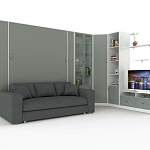Шкаф-кровать с диваном Шелли 23 BMS эффектно дополнит современные интерьеры в стиле минимализм и сэкономит пространство. Угловой комплекс включает в себя шкафы с витриной и открытыми полками, пенал для одежды и модуль с откидной кроватью и уютным диваном. Комфортная зона отдыха днем легко превращается в спальню при помощи надежного механизма трансформации. Нейтральная серо-белая гамма сделает помещение визуально просторнее. Купить шкаф-кровать с диваном Шелли 23 BMS для небольших квартир и студий приглашаем к нам в интернет-магазин.