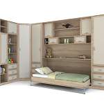 Шкаф-кровать трансформер Дуга BMS отличается современным дизайном, высокой функциональностью и дает возможность сэкономить жилую площадь комнаты. Угловая композиция с рамочными фасадами под массив дуба включает в себя платяные и бельевые отделения, выдвижные ящики для мелочей и вместительные открытые полки для книг и учебных материалов, а горизонтальная откидная секция с кроватью позволит легко получить комфортное спальное место. Купить шкаф-кровать трансформер Дуга BMS по выгодной цене приглашаем в наш интернет-магазин.