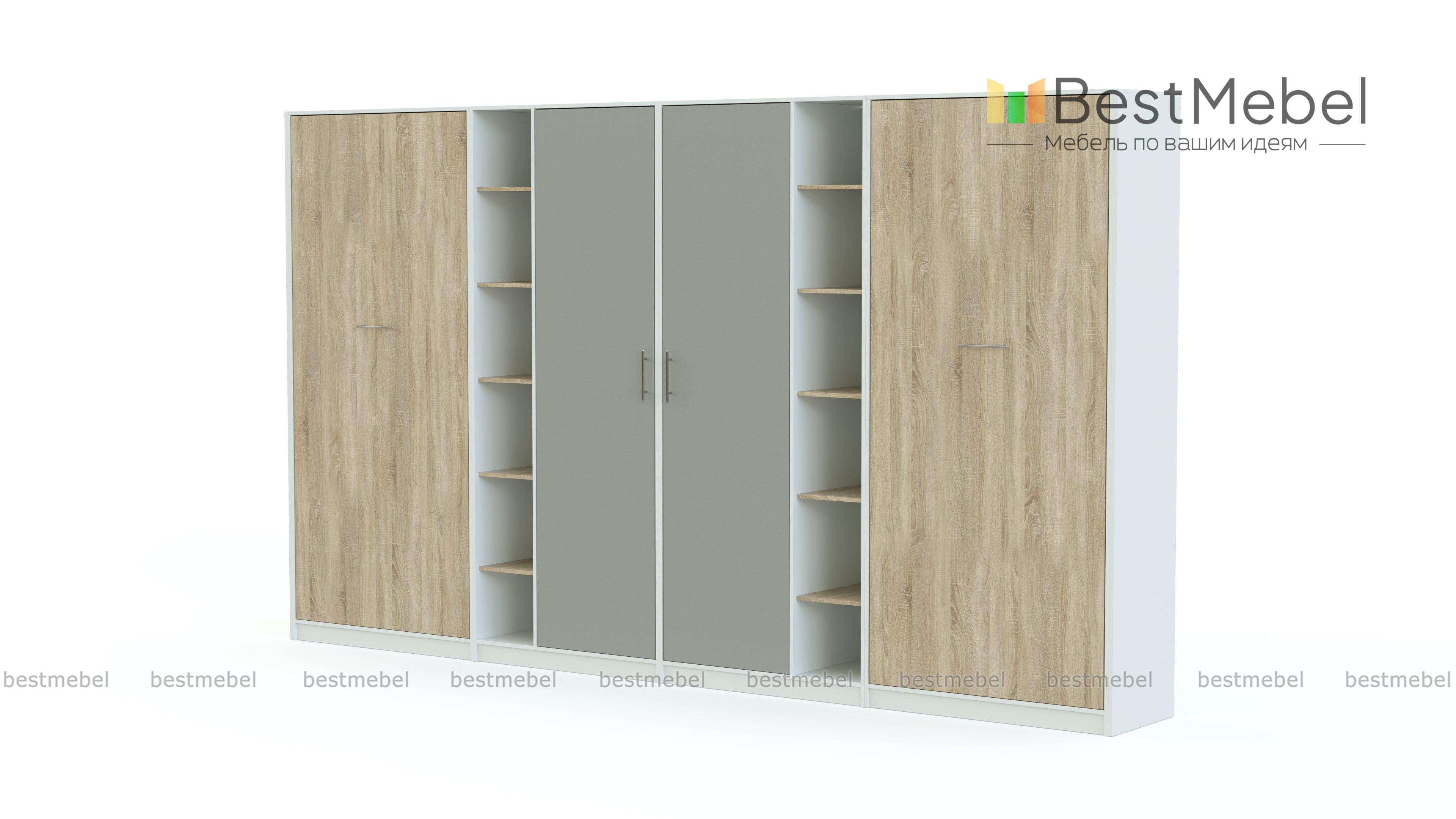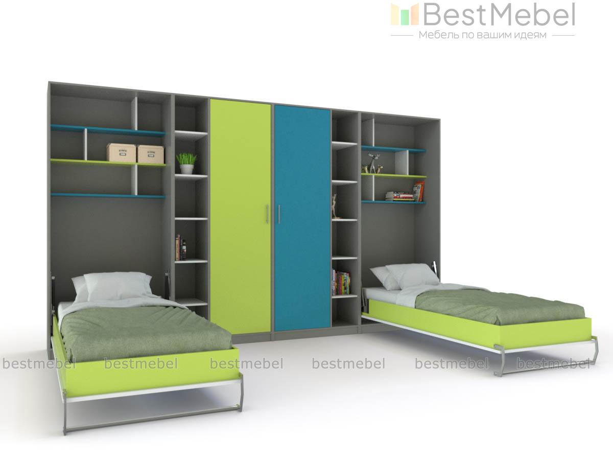 Шкаф-кровать трансформер Фазан 54 BMS – интересное дизайнерское решение для комнаты двоих подростков. Многофункциональный линейный комплекс включает в себя все необходимое для комфортного отдыха, учебы и хранения вещей, а в оформлении фасадов гармонично сочетаются нейтральные и яркие оттенки. Композиция включает в себя распашной платяной шкаф, книжные стеллажи и модули-трансформеры с откидными кроватями, плавающими столешницами и скрытыми в нишах открытыми полками. Купить шкаф-кровать трансформер Фазан 54 BMS и рационально организовать пространство вам поможет наш интернет-магазин.