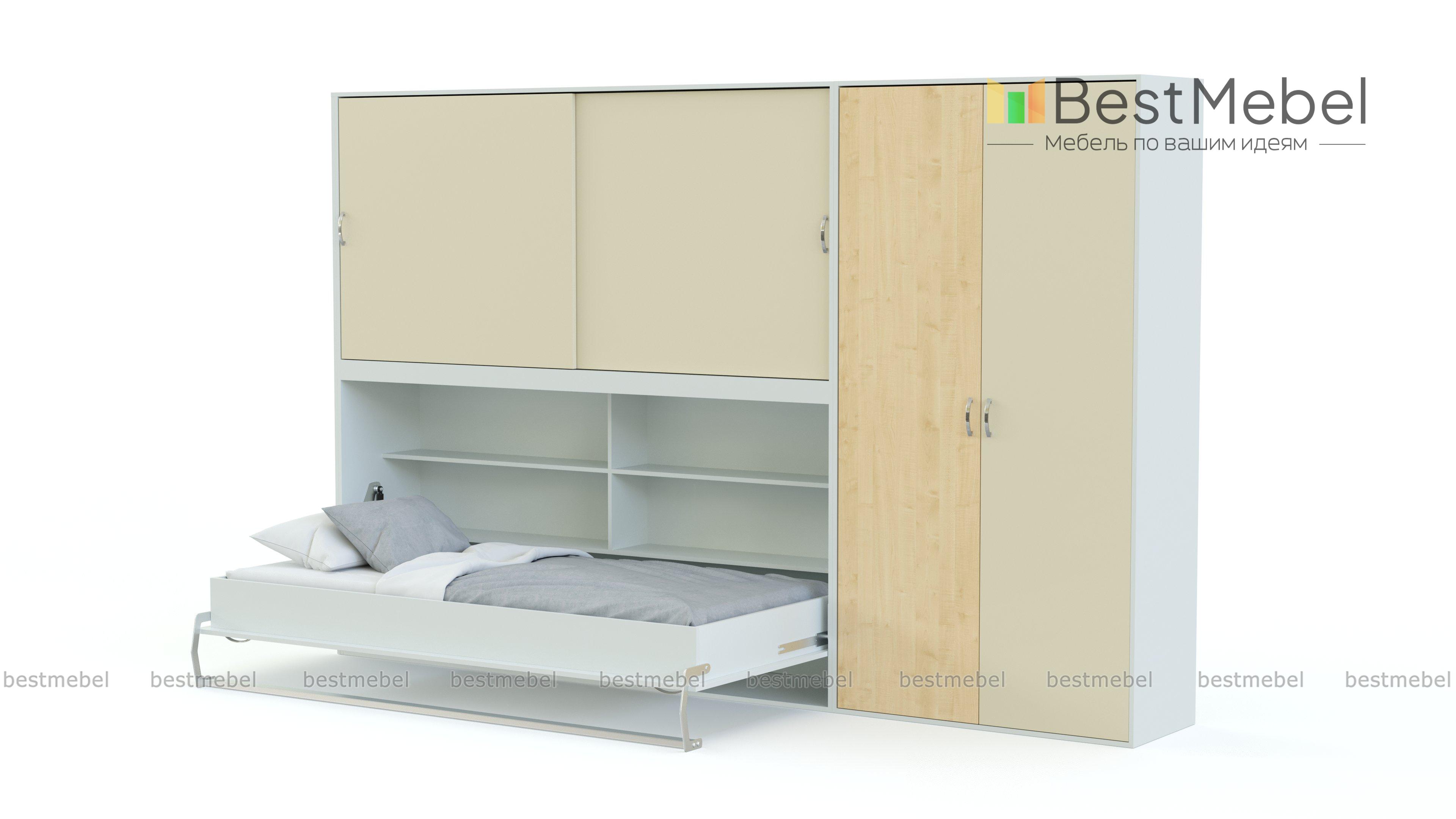 Шкаф-кровать трансформер Фазан 55 BMS прекрасно подходит для меблировки современной подростковой комнаты. Днем спальное место можно сложить и освободить пространство для учебы, творческих и спортивных занятий. Практичный и яркий комплекс включает в себя распашной платяной шкаф, раздвижную секцию с полками и штангой, а также горизонтальный модуль с откидной кроватью, столешницей и открытыми книжными полками. Купить шкаф-кровать трансформер Фазан 55 BMS приглашаем в наш интернет-магазин с учетом оптимальных параметров.