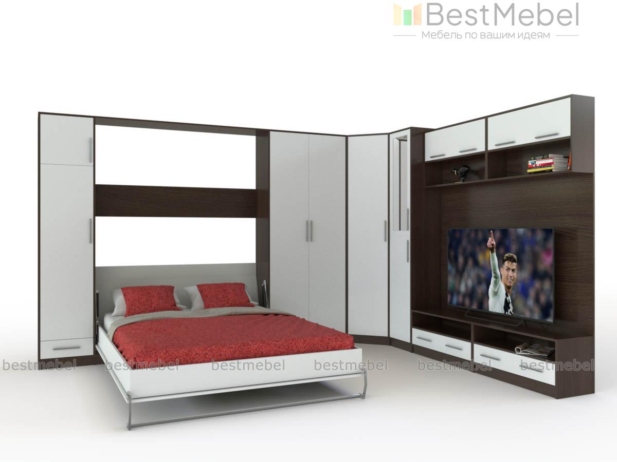 Шкаф-кровать трансформер Флау BMS – это угловая композиция, которая поможет рационально организовать пространство гостиной или студии. Многофункциональная модель объединила все необходимое для комфортного сна, хранения большого количества вещей и оформления зоны ТВ. Значительно сэкономить полезную площадь комнаты поможет откидная кровать, скрытая за белыми фасадами, а визуальную легкость интерьеру придаст цветовое решение – корпус контрастного оттенка и белоснежный фасад. Купить шкаф-кровать трансформер Флау BMS по лучшей цене приглашаем к нам в интернет-магазин.