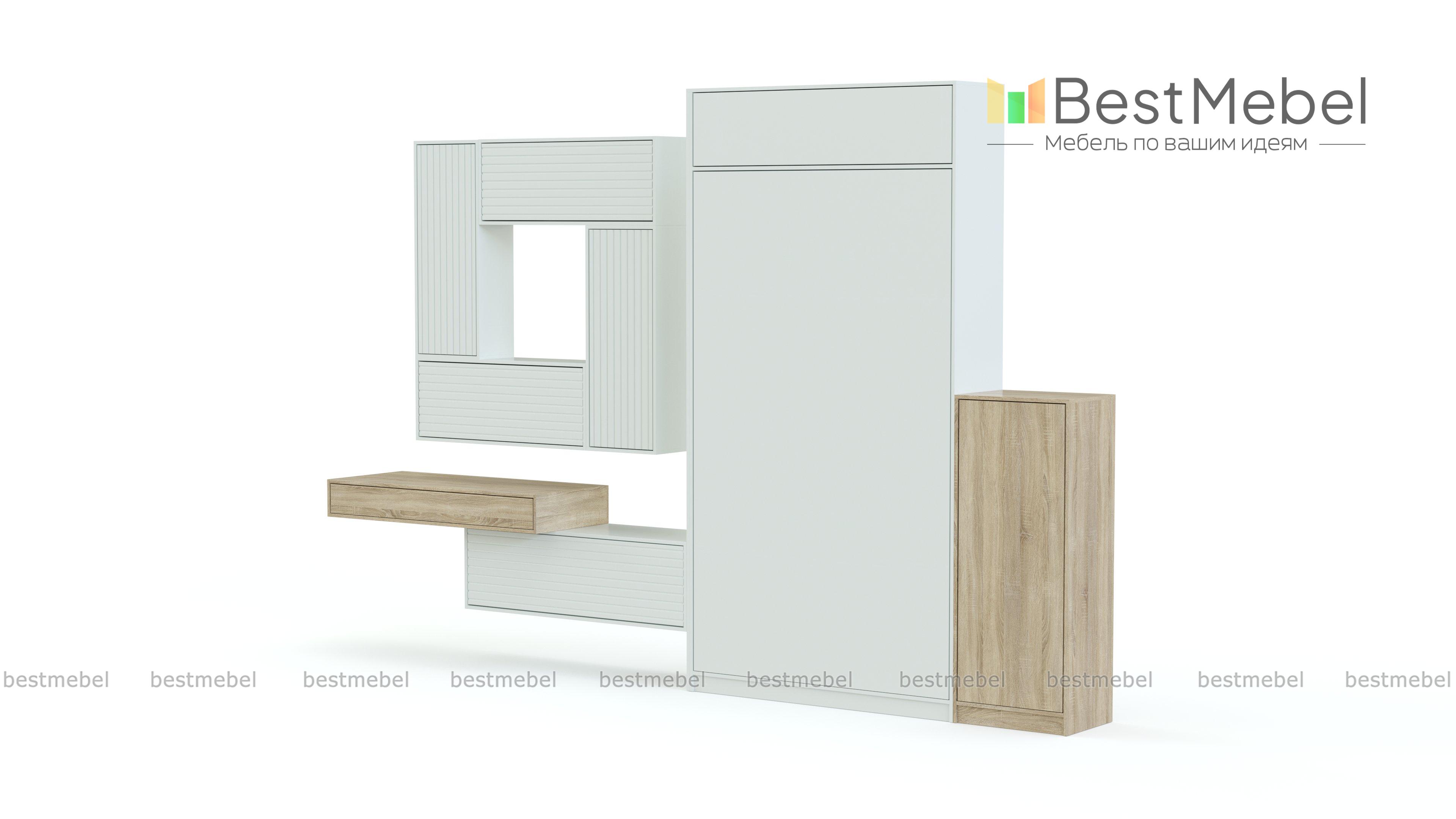 Шкаф-кровать трансформер Форма 128 BMS отличается эффектным и функциональным дизайном в стиле минимализм. Композиция 2 в 1 объединила удобную систему хранения из навесных модулей и шкаф с антресолью и откидной кроватью, замаскированной под дверцы. Стильную геометрию форм подчеркивает цветовое решение – древесные тона и белоснежный глянец с волнообразной 3D фрезеровкой. Купить шкаф-кровать трансформер Форма 128 BMS и значительно сэкономить пространство, не экономя на комфорте, вам поможет наш интернет-магазин.