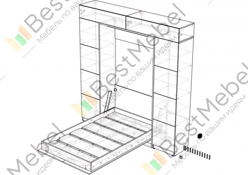 Мы не рекомендуем покупать пружинные матрасы к шкафу-кровати. Стоит отдавать предпочтение беспружинным изделиям. Это связано с тем, что поведение пружин в вертикальном положении матраса невозможно предсказать. Матрас быстро подвергается деформации и смещению слоев. Идеальным вариантом для откидной модели будет лёгкий беспружинный матрас, основу которого составляют современные материалы, не имеющие в составе пружины.