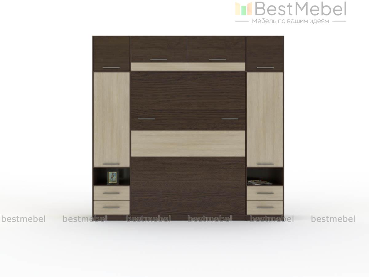Шкаф-кровать трансформер Олана BMS – нестандартное решение для гостиной или небольшой студии. Высокая стенка с антресолью оборудована боковыми комбинированными шкафами с распашными отделениями, ящиками и нишами, а в центральной части за имитацией дверей располагается откидная кровать. Полноценное спальное место вы легко получите при помощи вертикального механизма подъема. Лаконичная и выполненная в контрастных тонах, композиция гармонично впишется в современные интерьеры. Купить шкаф-кровать трансформер Олана BMS приглашаем в наш интернет-магазин.