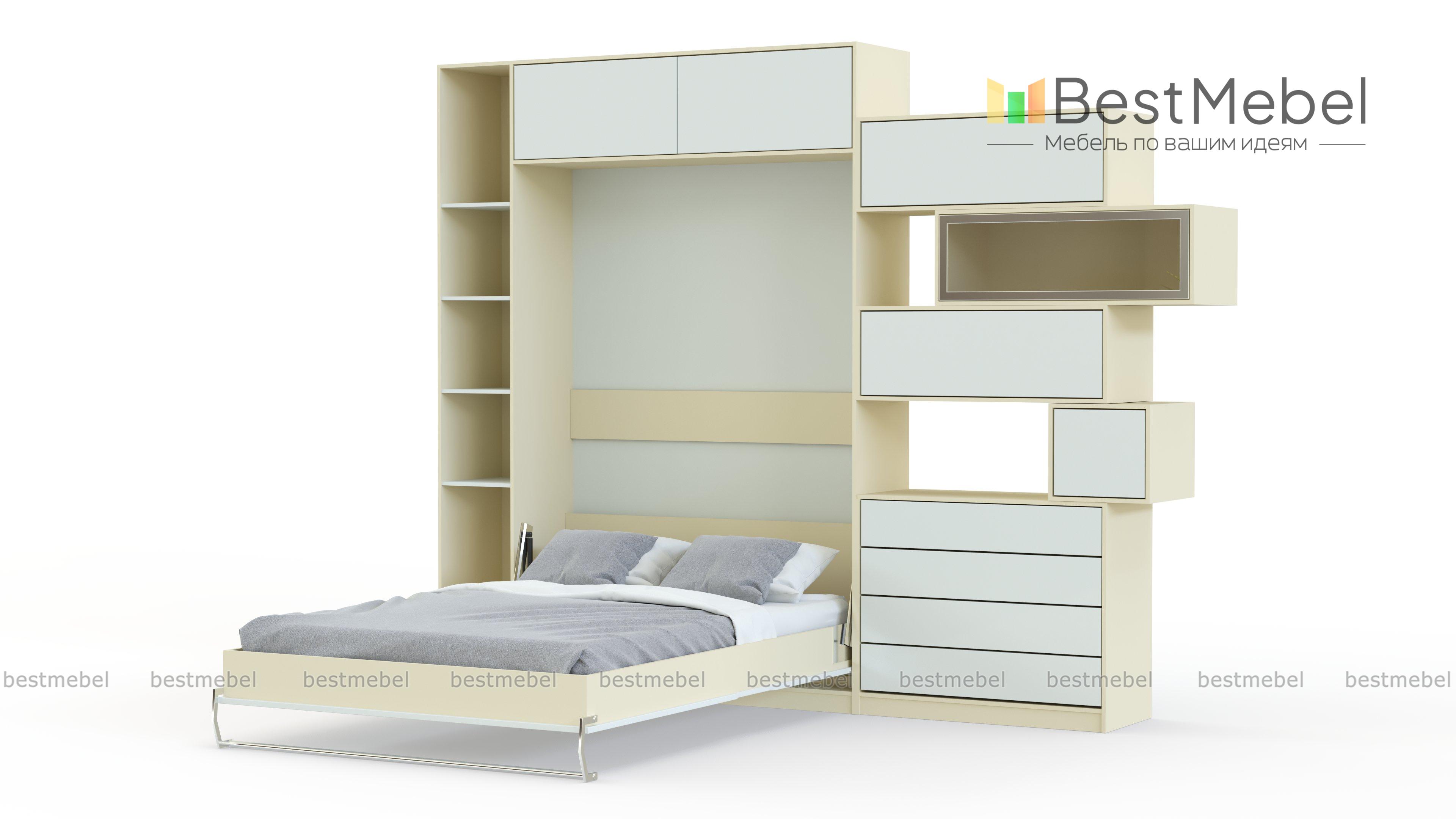 Шкаф-кровать трансформер Рига BMS – универсальный вариант для спален, гостиных и молодежных комнат. Сэкономить полезную площадь поможет компактный в сложенном виде шкаф с дополнением в виде антресоли и скрытой за имитацией дверей удобной откидной кроватью. Надежный механизм трансформации станет гарантией комфортной эксплуатации, а широкий выбор цветовых решений позволит создать уникальный дизайнерский интерьер. Купить шкаф-кровать трансформер Рига BMS приглашаем в наш интернет-магазин по отличной цене.