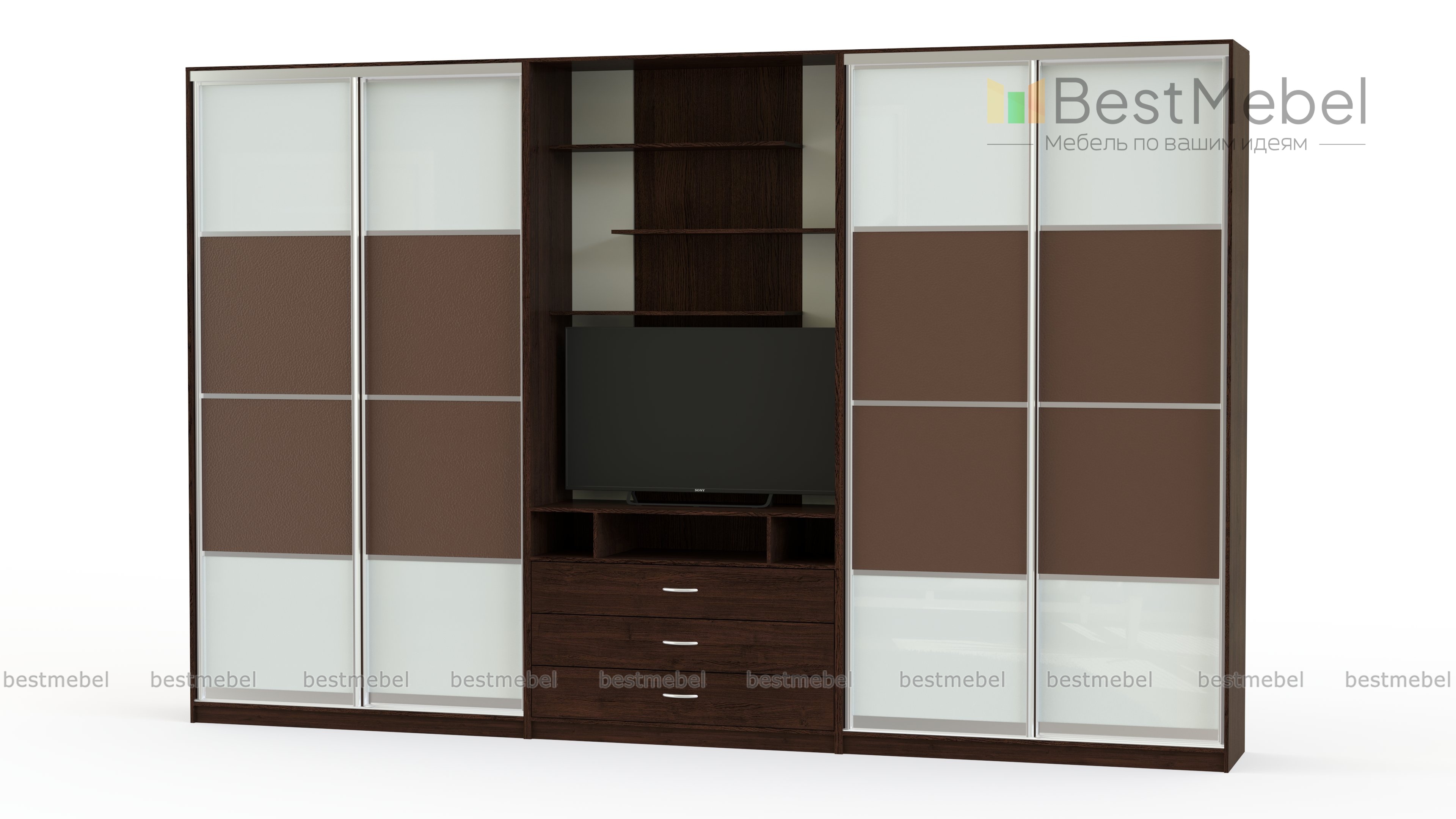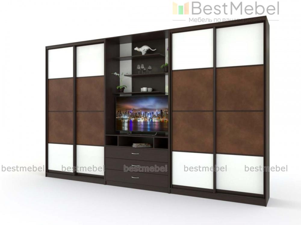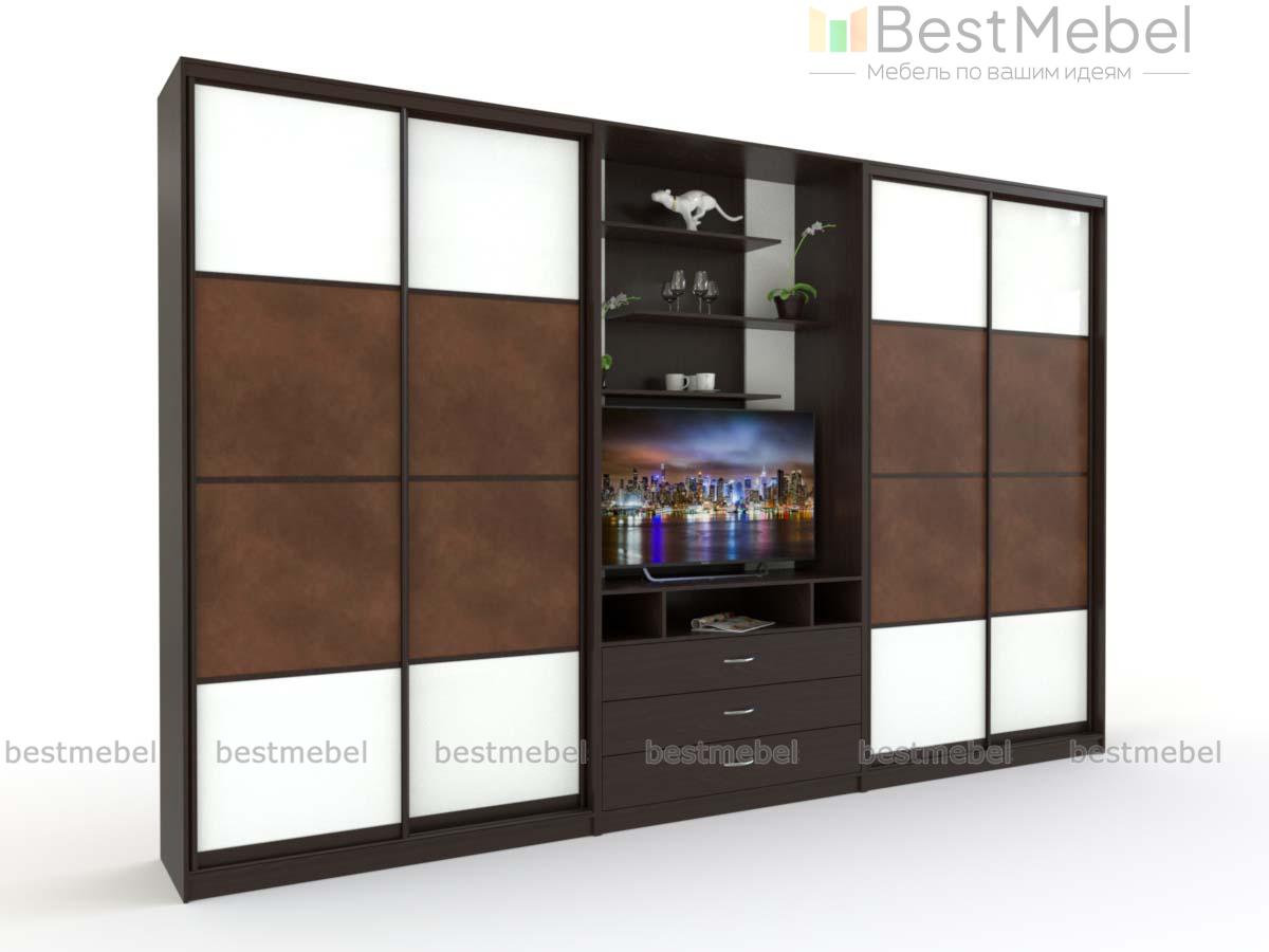Двойной шкаф-купе Даная 38 BMS отличается элегантным современным дизайном и функциональностью. Комбинированная модель позволит вам разгрузить от лишней мебели другие помещения дома и создать комфортный и эстетичный интерьер. Композиция объединила два двухдверных шкафа-купе и секцию с тумбой под ТВ и открытыми полками для книг и декоративных мелочей. Выполненный в контрастных тонах, шкаф украшен по фасаду вставками в экокоже. Купить двойной шкаф-купе Даная 38 BMS приглашаем в наш интернет-магазин.