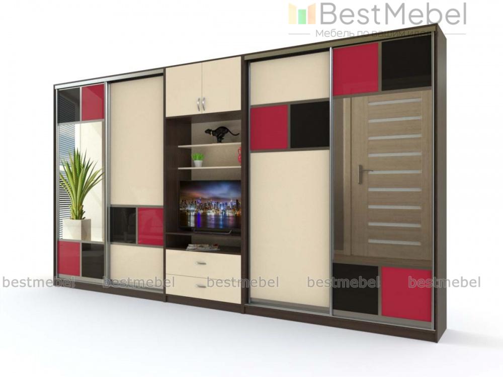 Двойной шкаф-купе Женева 19 BMS полностью займет одну из стен комнаты и станет главным элементом дизайна. Многофункциональная модель объединила два вместительных двухдверных шкафа-купе и секцию с тумбой под ТВ, открытыми полками для книг и мелочей и распашной антресолью. Вы сможете легко разместить большое количество вещей и сэкономить на лишней мебели, а запоминающимся интерьер сделает эффектное сочетание зеркальных поверхностей и белого с яркими геометричными вставками. Купить двойной шкаф-купе Женева 19 BMS по выгодной цене приглашаем к нам в интернет-магазин.