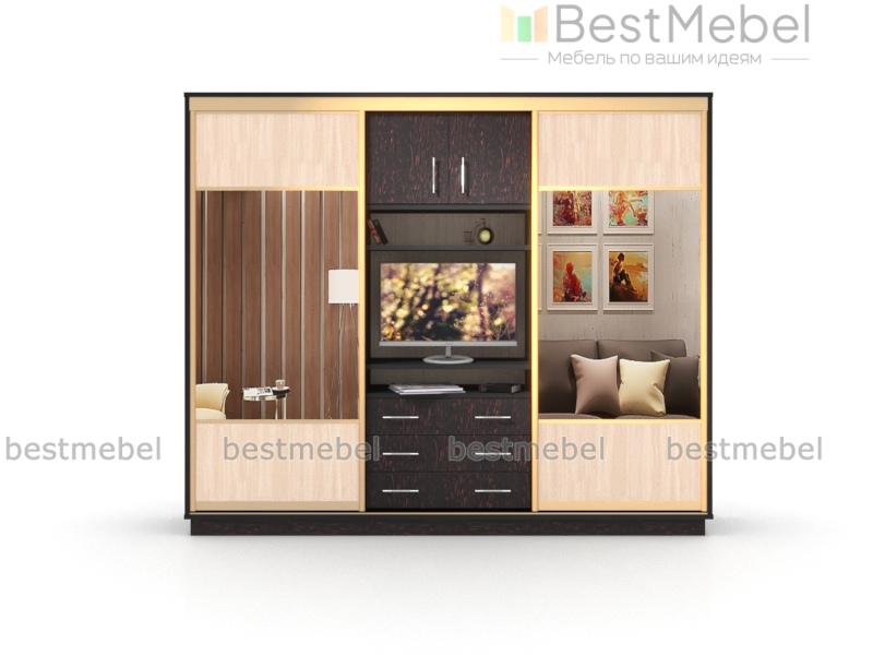 Шкаф-купе Александрия 7 BMS – современное решение для организации пространства в спальне или гостиной. Практичная конструкция, занимающая всю стену, позволит скрыть недостатки планировки и подчеркнуть достоинства интерьера благодаря возможности выбора цветового решения и вариантов отделки. Шкаф представляет собой комбинацию двух отделений с раздвижными зеркальными дверцами для белья и одежды и секции под ТВ с выдвижными ящиками, нишами и антресолью. Купить шкаф-купе Александрия 7 BMS и сэкономить полезную площадь вам поможет наш интернет-магазин.