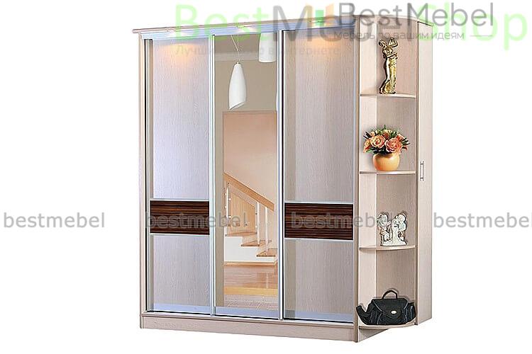 Шкаф-купе Аристо-2 BMS - для ценителей функциональных дизайнов и классической элегантности. Оборудованный рядом бельевых полок и штангой трехдверный шкаф дополнен скругленным торцевым стеллажом и узкой распашной секцией для хранения всевозможных бытовых вещей. Боковые дверцы украшены контрастными вставками, а центральная представляет собой зеркальное полотно. Купить шкаф-купе Аристо-2 BMS приглашаем в наш интернет-магазин с выбором размеров, цвета и компоновки.