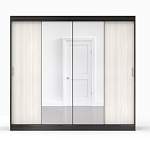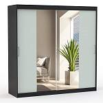 Фасад шкафа-купе состоит из двух дверей, которые выполнены из ЛДСП и зеркал. Их сочетание делает конструкцию менее габаритной на вид. А раздвижная система обеспечивает легкое и бесшумное открывание. На нашем сайте можно выбрать вариант цветового оформления. Здесь доступны светлые оттенки, темные насыщенные тона, матовые поверхности и многое другое.