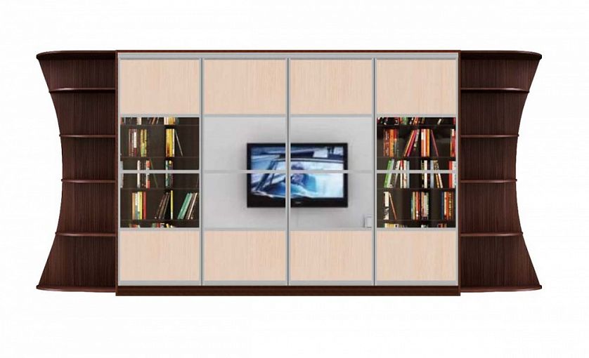 Шкаф-купе Денни 5.2 BMS гармонично впишется в интерьер просторной гостиной и поможет создать комфортный и запоминающийся интерьер. Композиция включает в себя четырехдверный шкаф и расположенные симметрично торцевые фигурные стеллажи для предметов декора и необходимых под рукой мелочей. В оформлении фасада скомбинированы вставки светлых древесных тонов, прозрачное стекло и зеркала, придающие комнате дополнительную глубину и объем. Купить Шкаф-купе Денни 5.2 BMS выгодно вы сможете в нашем интернет-магазине.