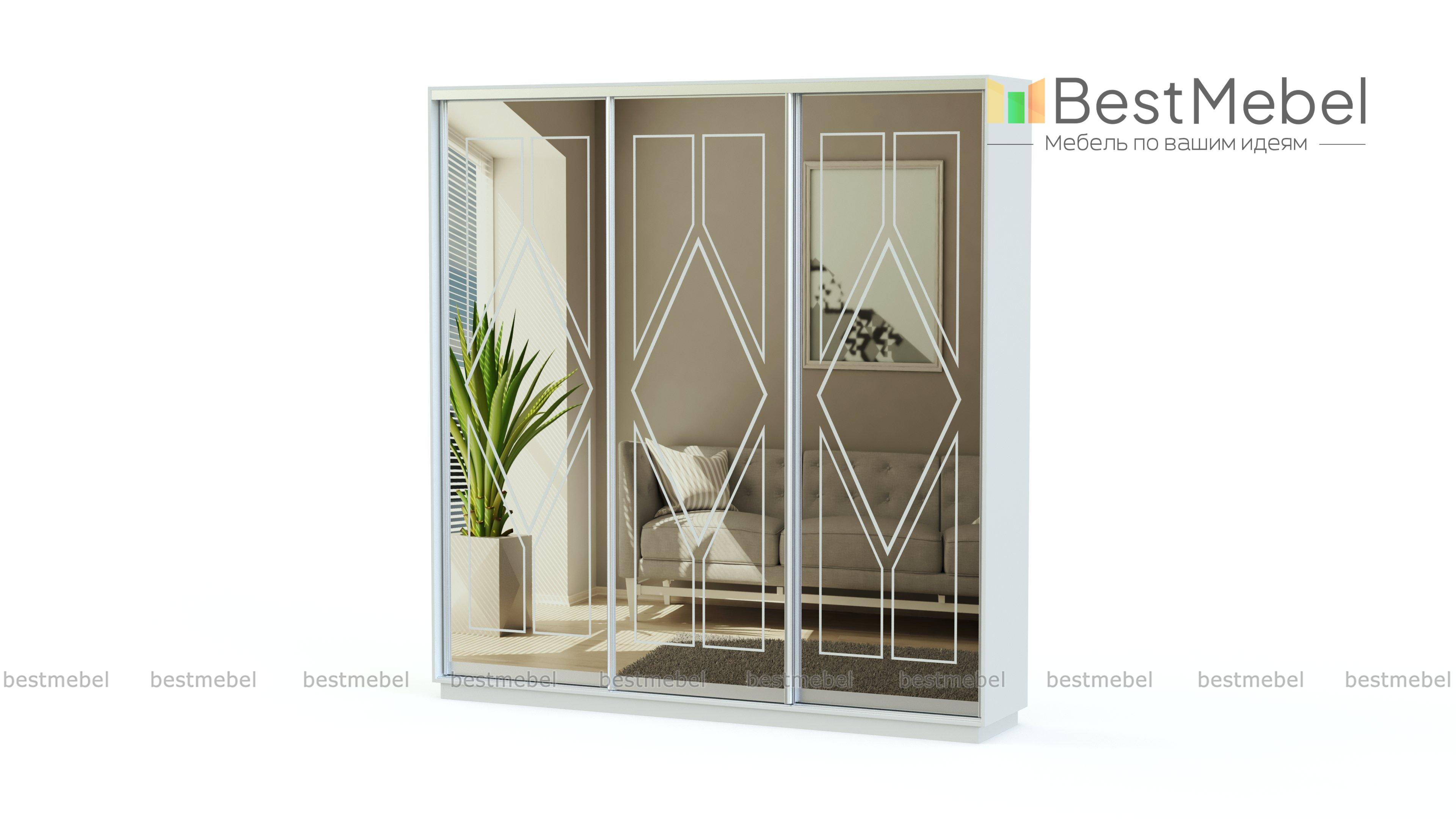 Шкаф-купе трехдверный Garant 4.1 BMS с полностью зеркальным фасадом, который добавит комнате глубины, украшен фантазийным пескоструйным рисунком. Базовая компоновка классической модели включает в себя полки для хранения одежды и домашнего текстиля и платяную штангу. Высокий цоколь «приподнимает» конструкцию, делая ее более легкой. Купить шкаф-купе трехдверный Garant 4.1 BMS с изготовлением по индивидуальным размерам вы сможете в нашем интернет-магазине.