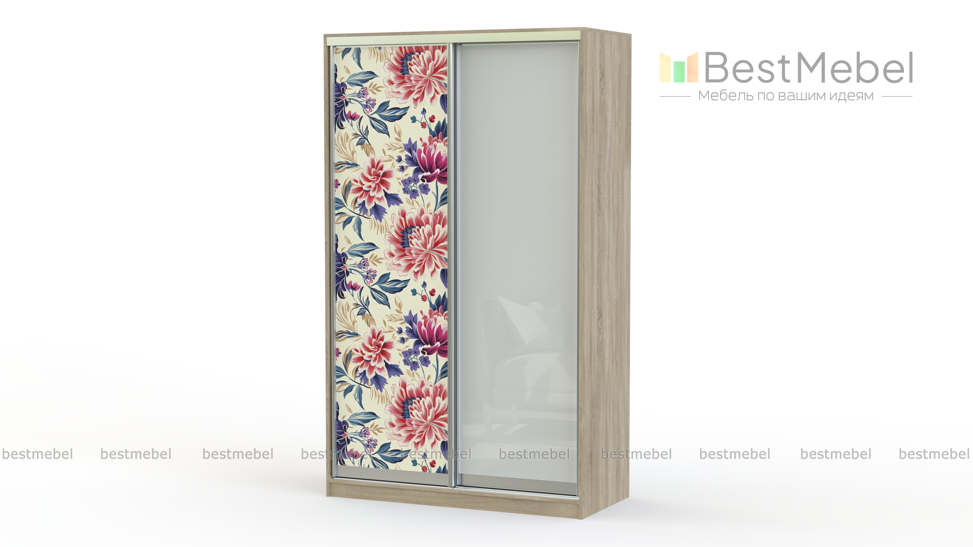 Шкаф-купе EL-06 BMS будет выполнять в интерьере не только практическую, но и эстетическую функцию. Корпус с древесным рисунком дополнен комбинированным фасадом – крупная цветочная фотопечать и покрытое цветной пленкой стекло. Двухдверную модель можно разместить даже на небольшом пространстве и организовать удобное хранение гардероба. Купить шкаф-купе EL-06 BMS приглашаем в наш интернет-магазин с выбором размеров и гармонирующего с другой мебелью цветового решения.