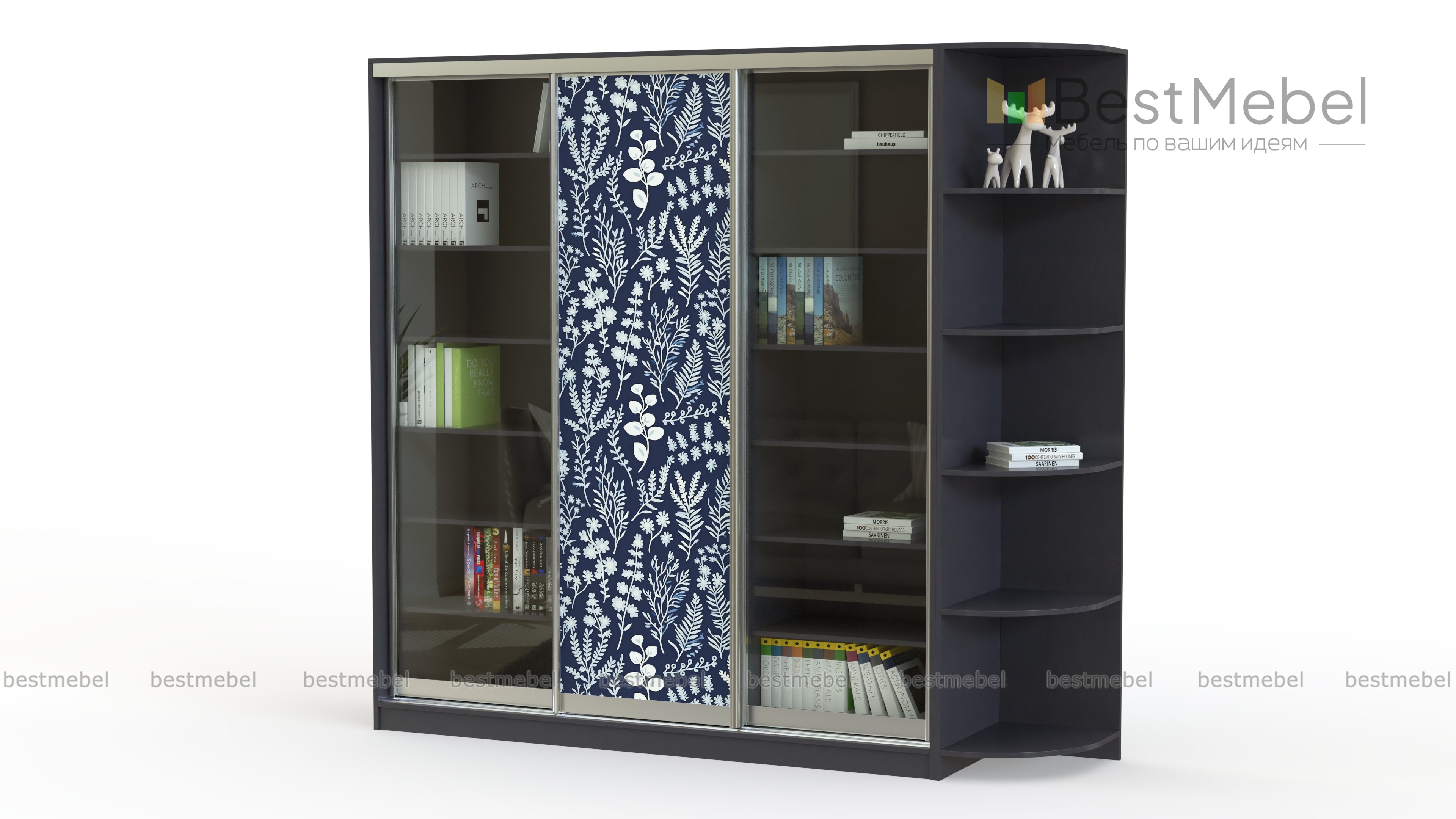 Шкаф-купе Флора 11 BMS, совмещенный со стеллажом, объединяет в себе функции платяного и книжного шкафа. Вы сможете хранить как одежду, так и книги из домашней библиотеки и рабочие материалы, размещать интерьерные украшения и необходимые мелочи. Две боковые раздвижные дверцы выполнены из прозрачного стекла, а на фасад центральной нанесен популярный растительный узор. Купить шкаф-купе Флора 11 BMS с выбором цвета и размеров приглашаем к нам в интернет-магазин.