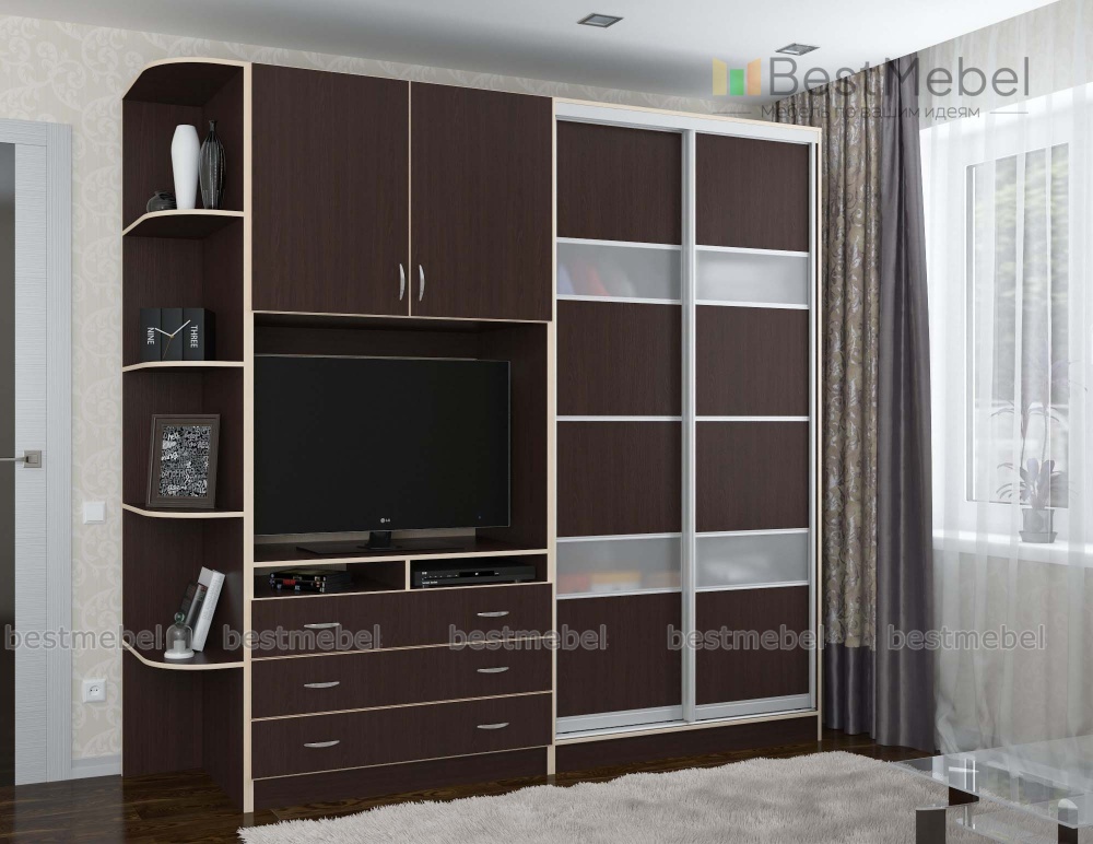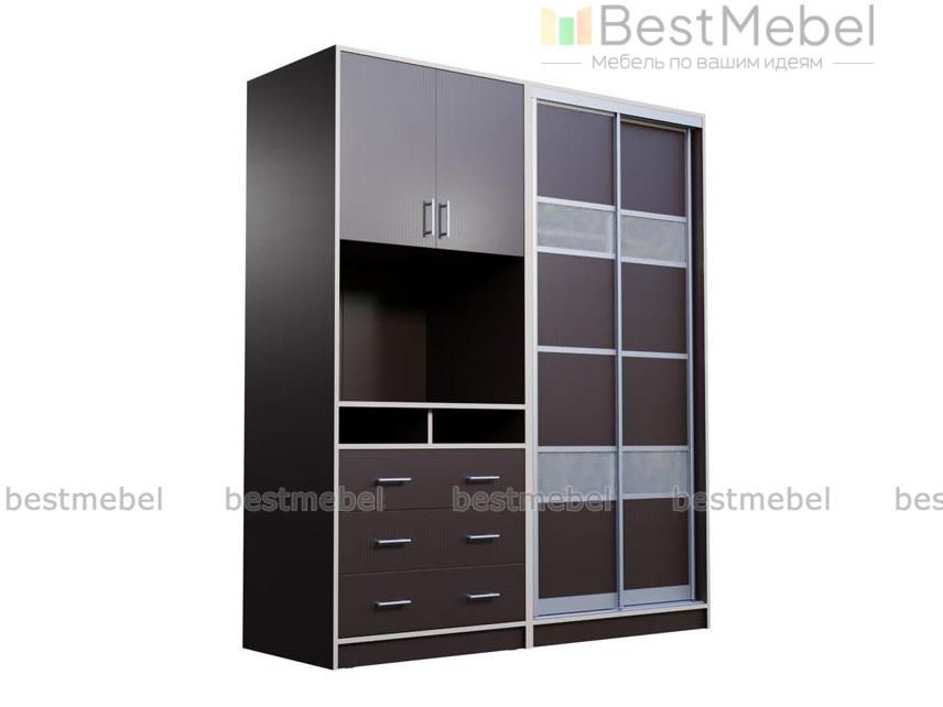 Шкаф-купе Гратис BMS – находка для малогабаритной квартиры. Добротно и благородно выглядит модель, сочетающая в себе функциональность, практичность, удобство в использовании и внешнюю привлекательность. Она вместит в свои обширные недра различное домашнее имущество, одежду, бытовую технику, обеспечивая идеальный порядок в комнате. Любую хозяйку порадуют вместительные комодные ящики, одежный шкаф, внутреннее наполнение которого можно выбрать по своему вкусу. Для размещения телевизора не нужно искать отдельную тумбу, потому что для него предусмотрена специальная ниша. Украшают мебель и придают ей законченный вид угловые закругленные полочки, на которых хорошо смотрятся сувениры, оригинальный декор, ваза с цветами. Заказывая шкаф на нашем сайте, можно подобрать расцветку на свой вкус, а также указать необходимые размеры изделия.