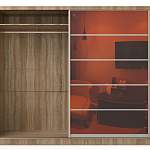 Шкаф-купе Инк BMS отличается презентабельным внешним видом и оригинальным дизайном. Благодаря двум стеклянным раздвижным дверям в прочном алюминиевом профиле конструкция визуально выглядит легкой, но при этом надежной. В стандартном исполнении двери шкафа имеют яркий оттенок, который выгодно оттеняет профиль, делящий каждую створку на пять секций. Внутреннее наполнение по умолчанию предусматривает наличие антресольной полки и хромированной штанги для вешалок. Для заказа дополнительных полок или ящиков обращайтесь за консультацией к менеджеру.