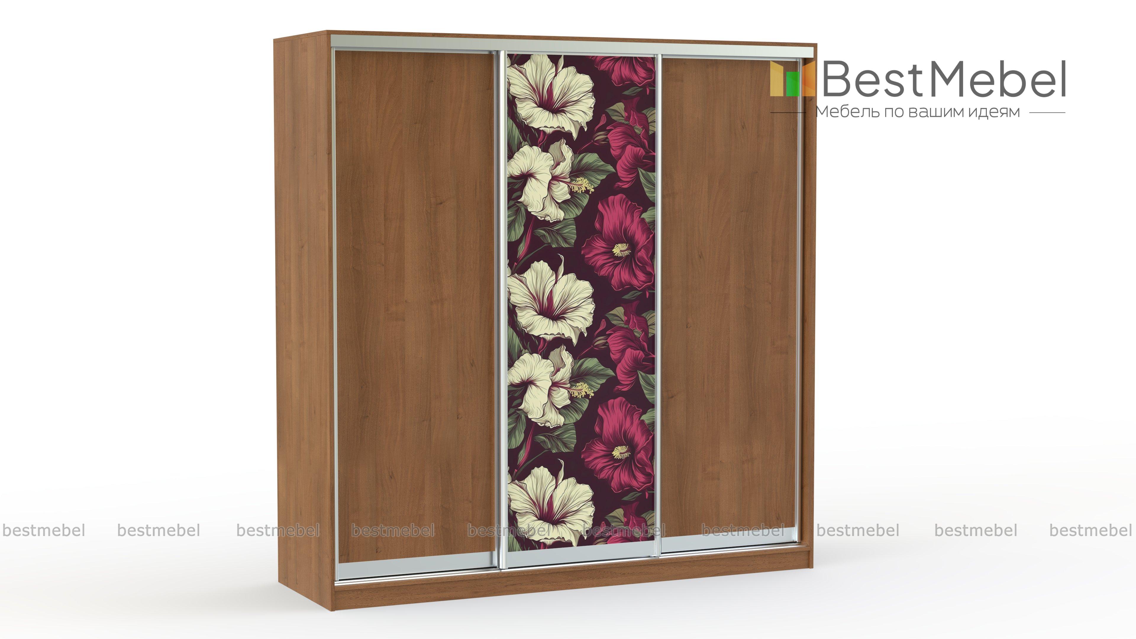Шкаф-купе Композиция-54 BMS изготовлен из ламинированной плиты в насыщенных древесных тонах и украшен цветочным принтом. Яркое решение для спальни, прихожей или гостиной гармонично сочетается с другой мебелью в современной стилистике. Внутренние отделения трехдверного шкафа помогут аккуратно разместить вашу одежду и постельные принадлежности. Купить шкаф-купе Композиция-54 BMS с учетом необходимых размеров вы сможете на сайте нашего интернет-магазина.