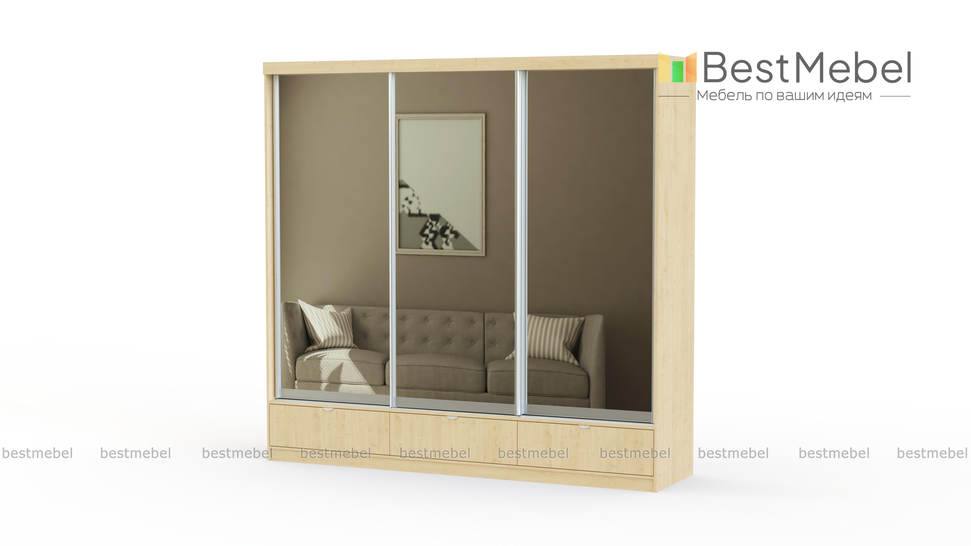 Просторный и вместительный шкаф-купе с зеркальным фасадом. Такая корпусная мебель гармонично вольется в любой интерьер, зрительно увеличив пространство. А если разместить шкаф напротив окна, то комната будет просто залита солнечным светом.