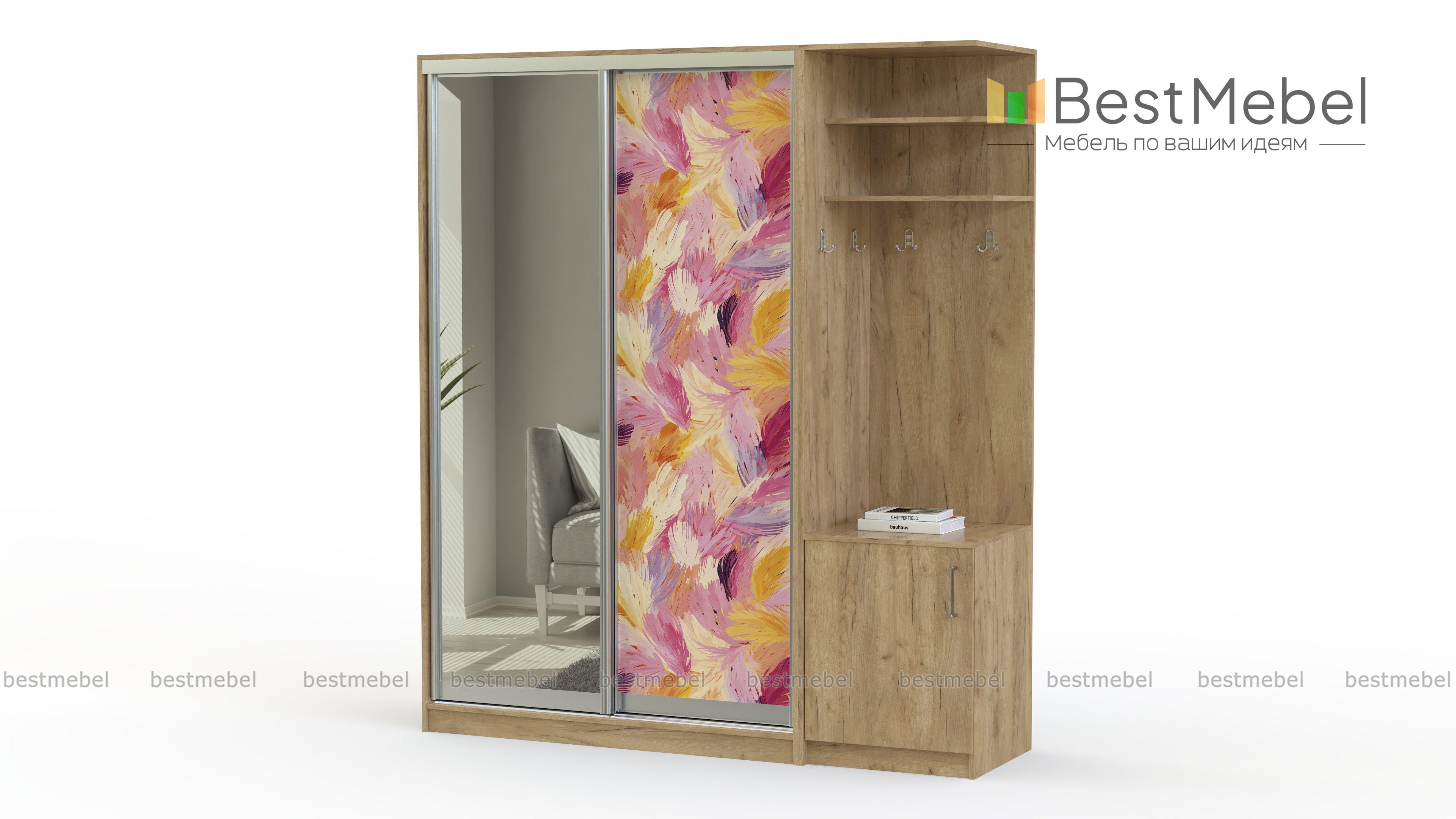 Шкаф-купе Марко 2 BMS объединен с торцевым модулем, оснащенным крючками для одежды и аксессуаров, открытыми полками и распашной тумбой. Визуально легкая конструкция поможет вам оборудовать комфортную и эстетичную входную зону. В оформлении фасада двухдверного шкафа скомбинированы зеркальное полотно и ламинированная плита с цветным рисунком-абстракцией. Купить шкаф-купе Марко 2 BMS приглашаем в наш интернет-магазин с возможностью выбора цвета и размеров.