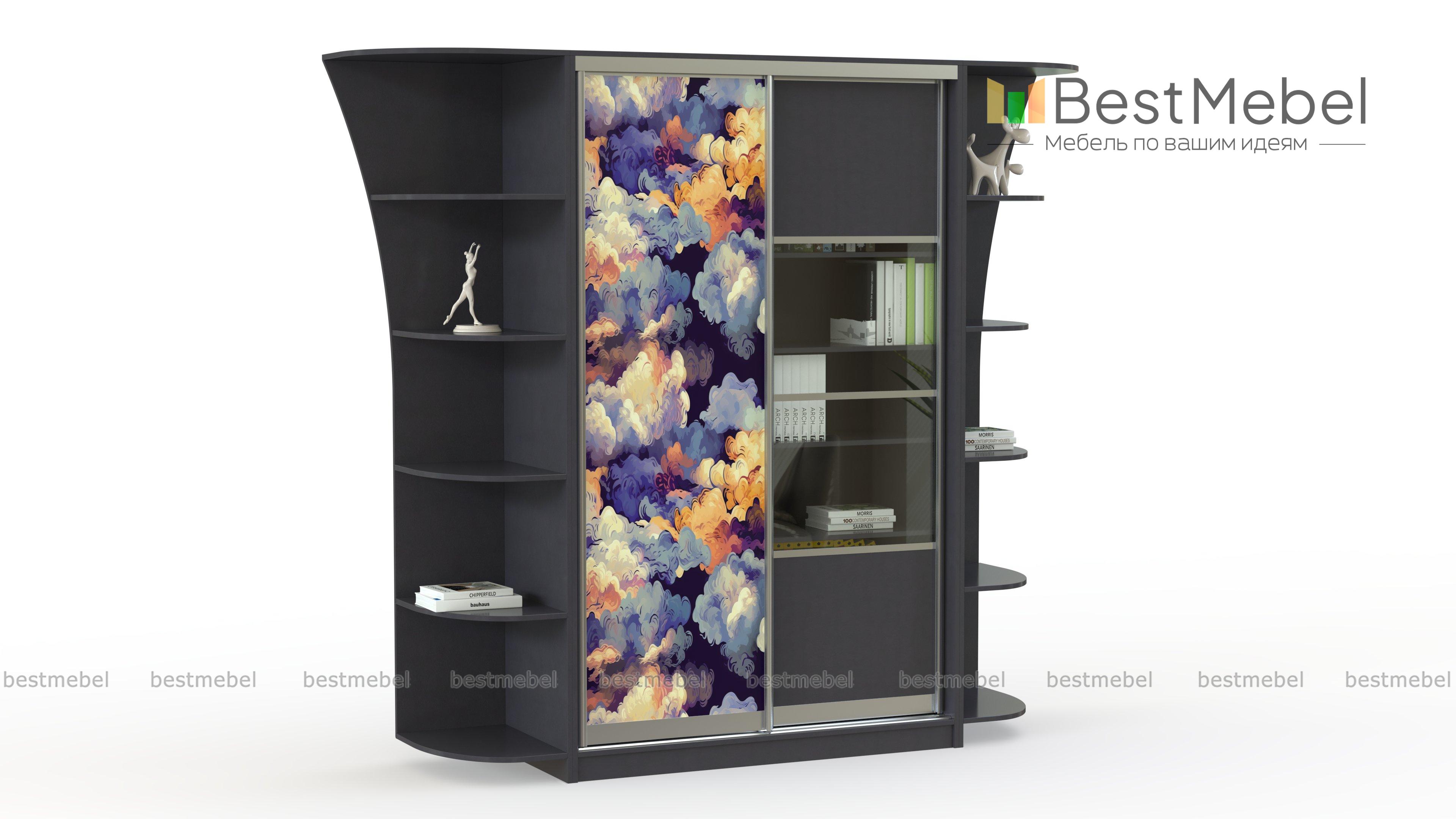 Шкаф-купе Марко 4 BMS отличается элегантным, сужающимся книзу силуэтом, и эффектным дизайном фасада. Дверцу со стеклянной вставкой дополняет глухая створка, украшенная стойкой фотопечатью в насыщенных оттенках. Продуманная система хранения включает в себя платяное отделение со штангой и полками и два угловых стеллажа под книги и всевозможные аксессуары. Купить шкаф-купе Марко 4 BMS приглашаем в наш интернет-магазин с возможностью выбора цвета и габаритов.