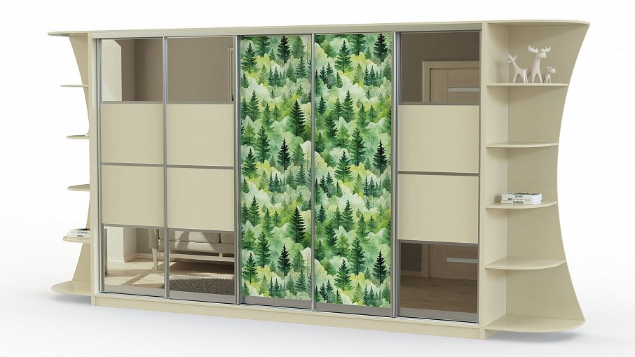 Шкаф-купе Мираж 19 BMS украшен фотопечатью «природной» тематики, а зеркальные вставки на фасаде визуально облегчают конструкцию. Пятидверная модель классической линейной конструкции с легкостью разместит гардероб семьи и домашний текстиль. Дополняют шкаф два фигурно вырезанных стеллажа с радиусными полками, создавая эффектный силуэт. Купить шкаф-купе Мираж 19 BMS с выбором оптимальных размеров и цвета по каталогу вы сможете в нашем интернет-магазине.