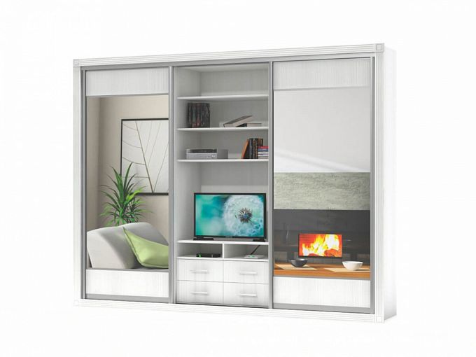 Шкаф-купе под ТВ 1 BMS – комбинированная модель, объединившая классические и современные черты. Крупногабаритный шкаф может стать полноценной заменой стенкам в гостиной, компактно разместить вещи и нестандартно оформить зону ТВ. Модель оборудована двумя раздвижными отделениями для белья и одежды, открытыми книжными полками, тумбой и просторной нишей. Светлые древесные оттенки и зеркала в полный рост сделают комнату визуально просторнее. Купить шкаф-купе под ТВ 1 BMS приглашаем недорого в наш интернет-магазин.