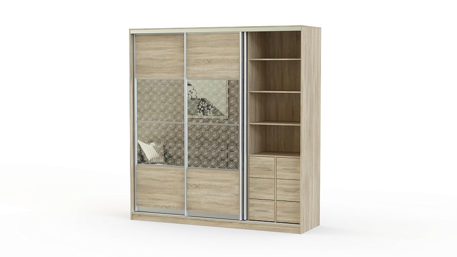 Шкаф-купе Роза-3 BMS – великолепная серийная продукция. Трёхстворчатый предмет мебели имеет в своём наполнении богатую компоновку, сочетающую в себе выдвижные миниатюрные ящики, полки, штангу для плечиков. Всё это позволяет хозяйке организовать систематизированное хранение повседневной и деловой одежды, постельного белья, аксессуаров, обуви. Дверки изделия легко и беспрепятственно ездят по своим направляющим, обеспечивая отличный доступ к содержимому. Более того, очаровательные вставки с узорами являются основным декорированием модели. А вместе с выдержанным однотонным оттенком, они буквально излучают тепло и уют. Купить шкаф-купе Роза-3 BMS можно по низкой стоимости и с учётом бесплатной доставки на нашем сайте.