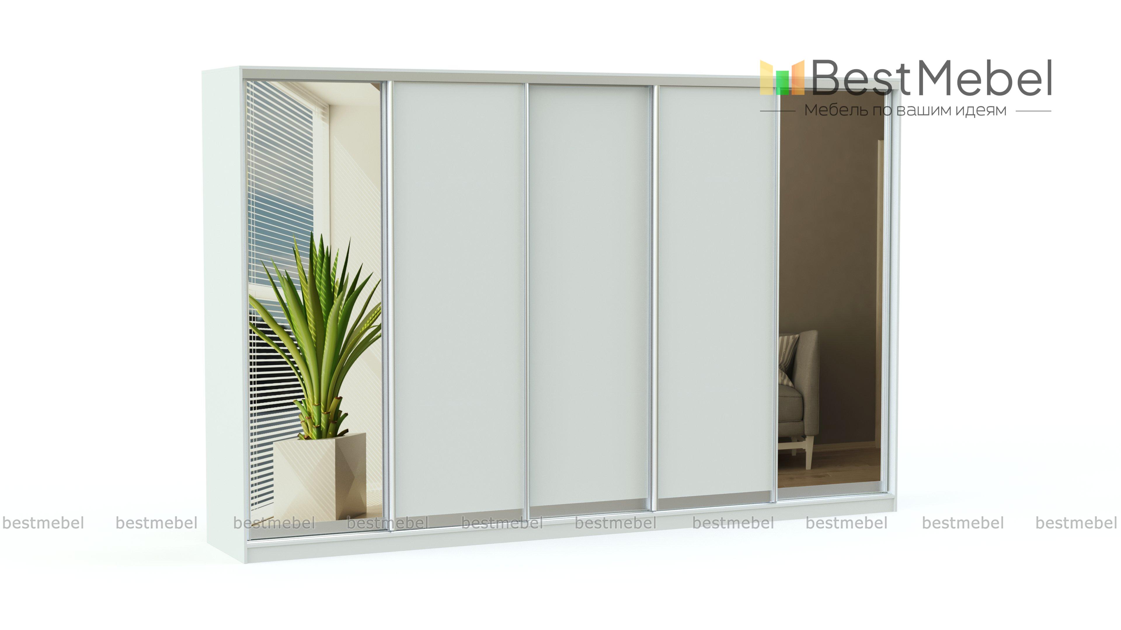 Стильный и вместительный шкаф-купе для большой семьи. Фасад изделия может сочетать в себе зеркала и ДСП, или полностью может быть изготовлено из одного материала. Конструкция шкафа имеет полки разного размера и отделения со штангами для одежды на вешалках. При заказе на сайте можно выбрать цвет изделия и профиля из предложенных вариантов. А за дополнительную стоимость фасад может быть дополнен фотопечатью. Качественная алюминиевая профильная система обеспечивает легкое скольжение для бесшумного открывания. Организуйте аккуратное и компактное хранение вещей, купив шкаф-купе по доступной цене на нашем сайте.