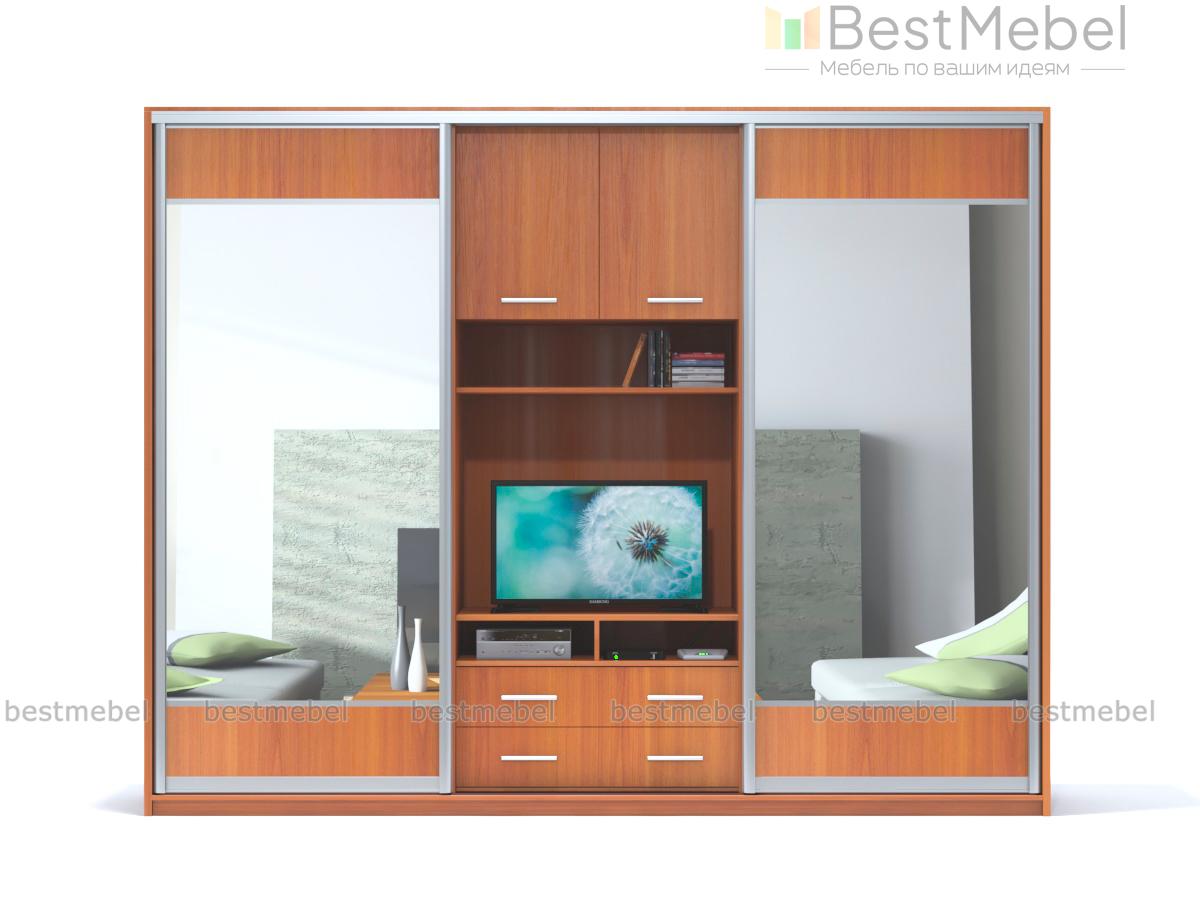 Шкаф-купе Стайл BMS станет интересной альтернативой привычным стенкам в интерьере современной гостиной. Комбинированная модель оборудована двумя раздвижными отделениями-купе для белья и одежды и центральной открытой секцией с тумбой под ТВ, полкой и распашным шкафчиком. Шкаф позволит компактно разместить вещи и оформит зону отдыха, а зеркальные фасады сделают комнату визуально просторнее и легче. Купить шкаф-купе Стайл BMS приглашаем в наш интернет-магазин, подобрав нужные параметры.