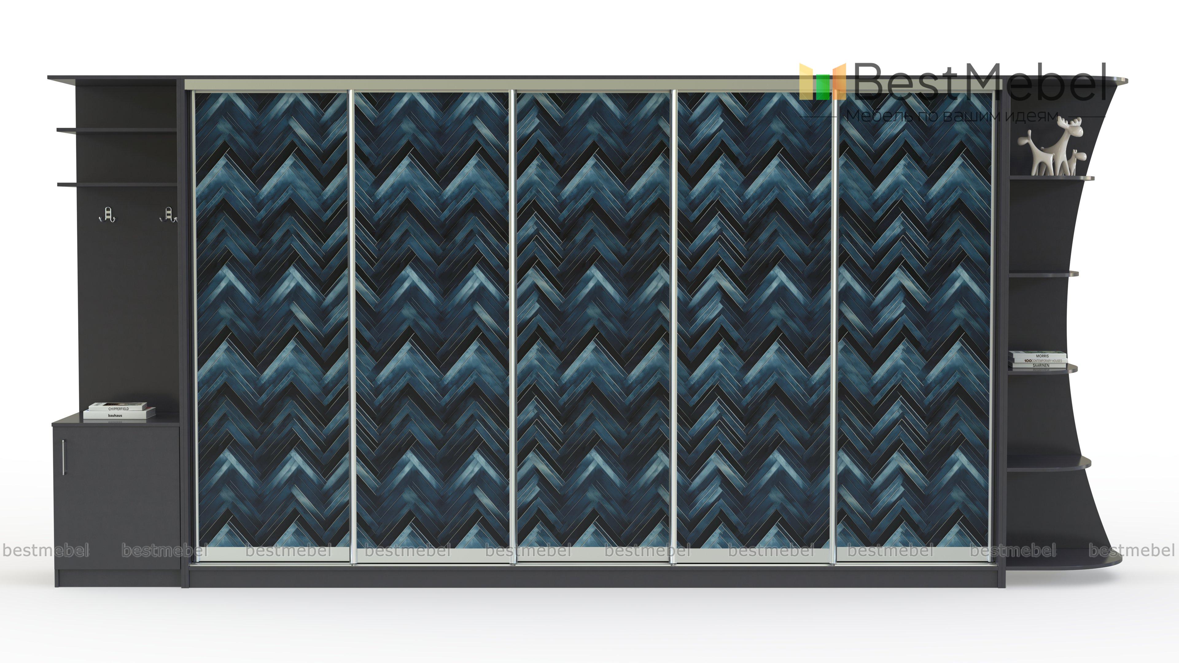 Шкаф-купе Стоун 215 BMS поможет правильно организовать пространство входной зоны. Вместительный пятидверный гардероб дополняют угловой стеллаж со скругленными полками и эффектным вырезом боковины и открытая вешалка, дополненная тумбой и двумя полками. Фасад шкафа украшен геометрическим рисунком в глубоких, насыщенных оттенках, который акцентирует интерьер. Купить шкаф-купе Стоун 215 BMS приглашаем в наш интернет-магазин с выбором размеров, цвета и фурнитуры.