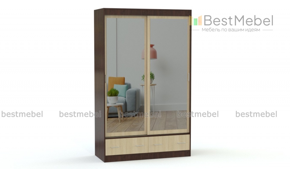 Шкаф-купе Светлана 13 BMS имеет практичную комбинированную конструкцию, а лаконичный дизайн делает модель универсальной. В верхней части шкафа располагается просторное отделение-купе, а в нижней – два вместительных выдвижных ящика. Выполненный в древесных тонах, шкаф помогает создать уютный интерьер, а ростовые зеркала на фасаде визуально расширят границы небольшой комнаты. Купить шкаф-купе Светлана 13 BMS приглашаем в наш интернет-магазин с возможностью выбора размеров.
