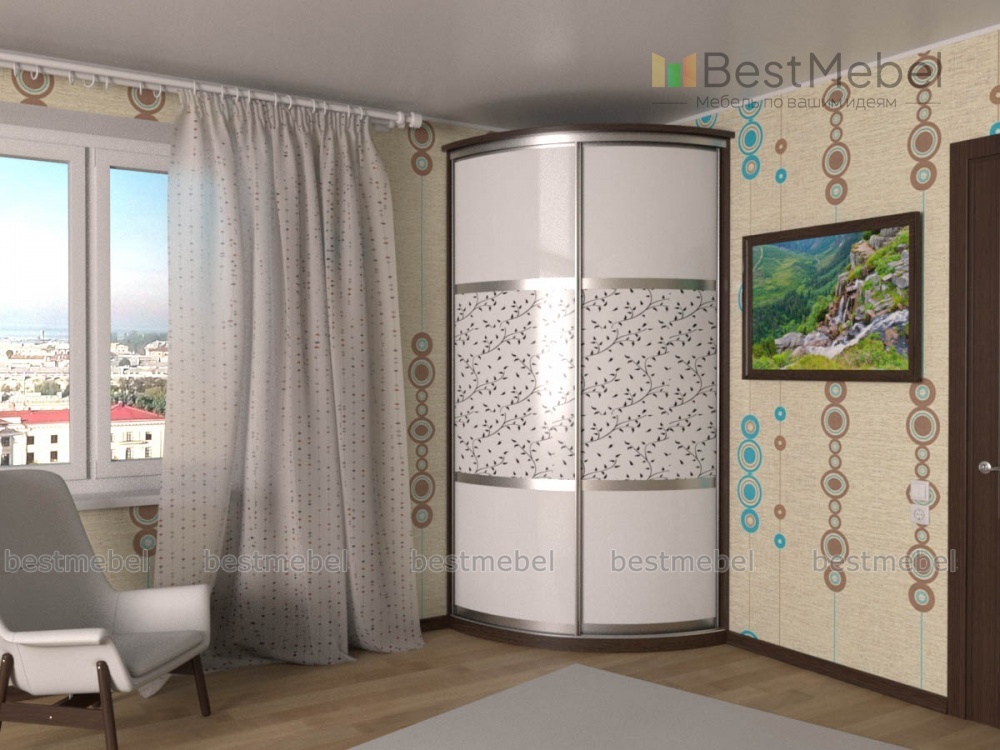 Шкаф-купе радиусный Елена 9 BMS – удобная система хранения для современной малогабаритной квартиры, в которой сочетаются практичность конструкции и элегантный дизайн. Компактный шкаф сможет задействовать угловое пространство и станет эффектным акцентом в интерьере благодаря выпуклому фасаду. Дверцы светлого оттенка с цветочной фотопечатью делают помещение визуально просторнее. Купить шкаф-купе радиусный Елена 9 BMS приглашаем в наш интернет-магазин с учетом оптимальных параметров.