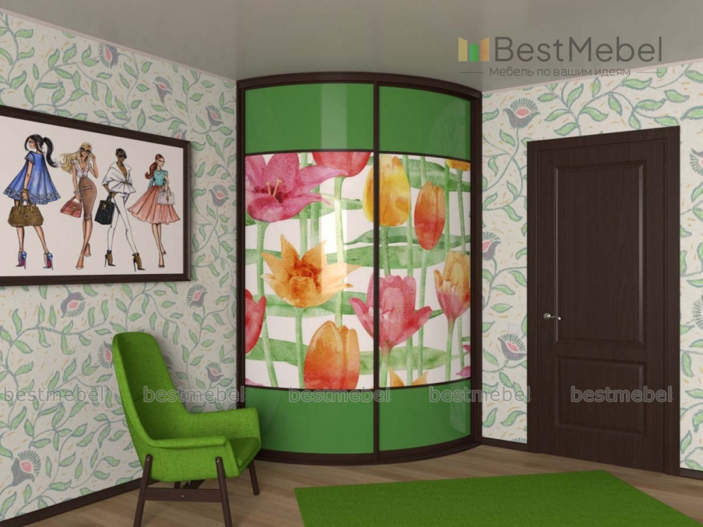 Шкаф-купе радиусный Терция 39 BMS оптимален для установки в небольших помещениях. Компактный по ширине, двухдверный шкаф вместителен за счет угловой конструкции и выпуклого радиального фасада. Модель удобна для хранения гардероба и домашнего текстиля, гармонично вписываясь в интерьер спальни или молодежной комнаты. Ярким акцентом меблировки станут цветные фасады с цветочной фотопечатью. Купить Шкаф-купе радиусный Терция 39 BMS приглашаем в наш интернет-магазин по доступной цене.