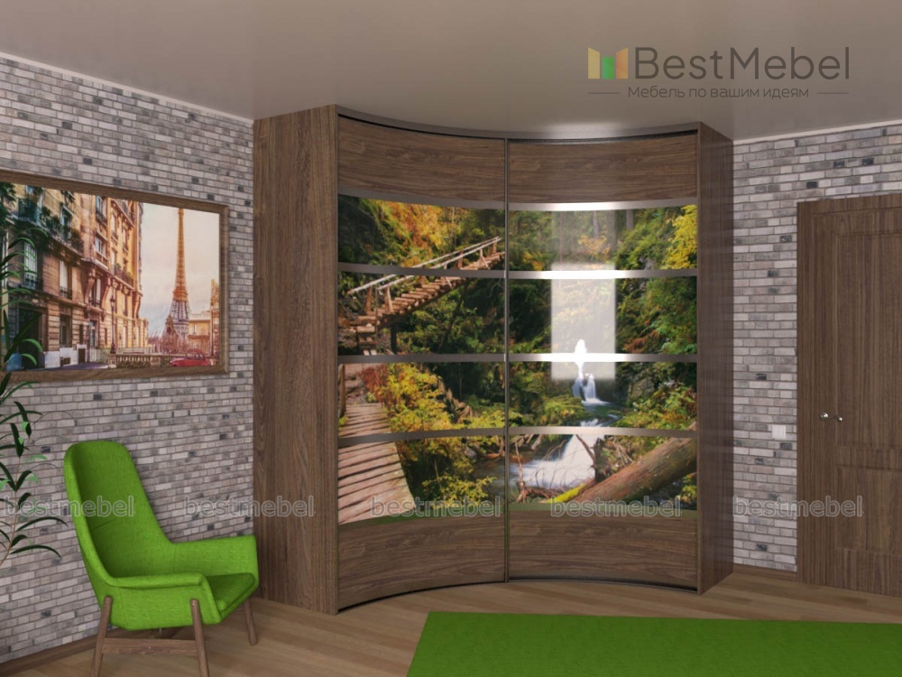 Шкаф радиусный Сангри 74 BMS привлекает не только оригинальной формой фасада, но и сочетанием поверхностей, имитирующих текстуру дерева и фотопечатью с природным видом. Радиальный вогнутый шкаф займет центральное место в интерьере прихожей, гостиной, спальни или современной молодежной комнаты. Универсальная двухдверная модель имеет угловую конструкцию и просторное внутреннее отделение, удобное для хранения одежды, обуви и аксессуаров. Купить Шкаф радиусный Сангри 74 BMS вы сможете в нашем интернет-магазине по доступной цене.