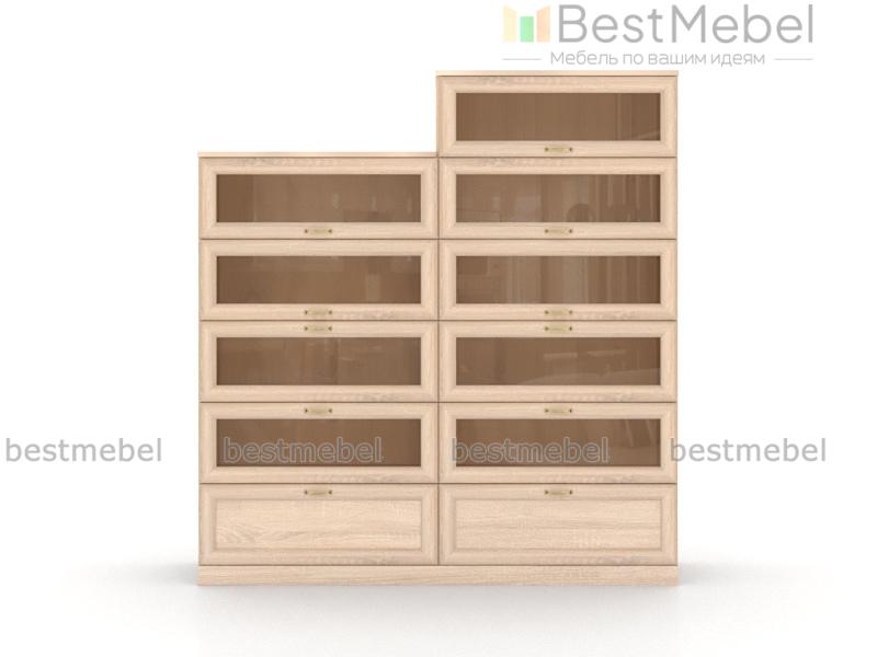 Библиотека Для дома 34 BMS – это отличная вместительность и удобные средние габариты, которые позволят легко вписать модель в помещения любой планировки. Разноуровневый шкаф с рамочными фасадами, украшенными витражами, позволит эффектно разместить предметы декора и станет настоящим украшением интерьера. Для книг, журналов и разнообразных мелочей предусмотрены просторные полки с застекленными откидными дверцами и глухие отделения в основании. Купить библиотеку Для дома 34 BMS и дополнить меблировку гостиной практичным предметом вам поможет наш интернет-магазин.