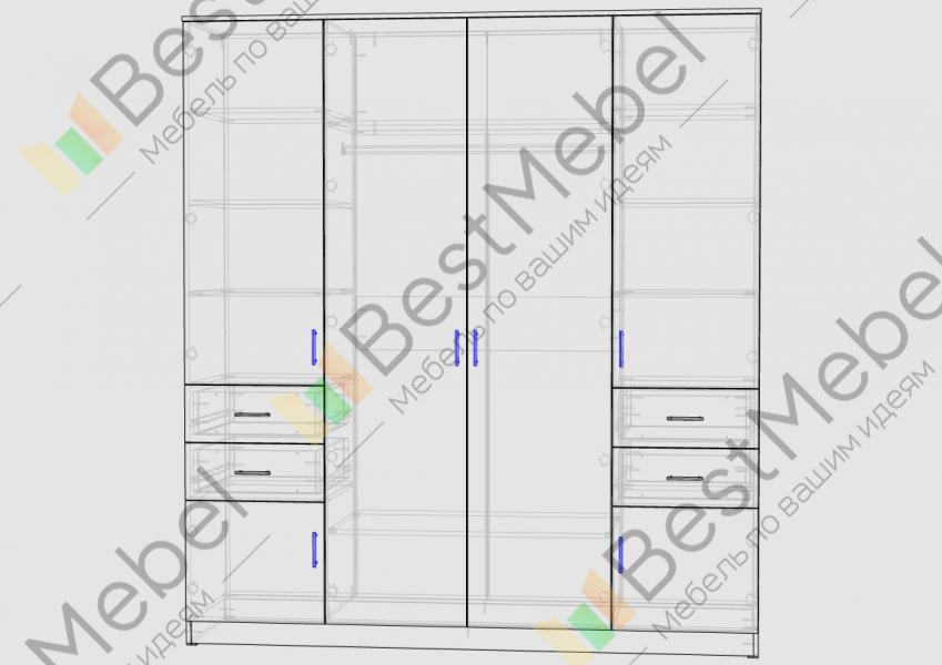 Распашной шкаф Эстелла BMS отличается высоким уровнем функциональности за счет платяного отсека с овальной штангой и большому количеству вместительных выдвижных ящиков и распашных отделений с полками. Модель, выполненная в нейтральных древесных оттенках, оснащена удобной и качественной фурнитурой и поможет грамотно организовать свободное пространство вашей спальни, прихожей или гостиной. Купить распашной шкаф Эстелла BMS с возможностью изготовления по индивидуальным размерам приглашаем в наш интернет-магазин.