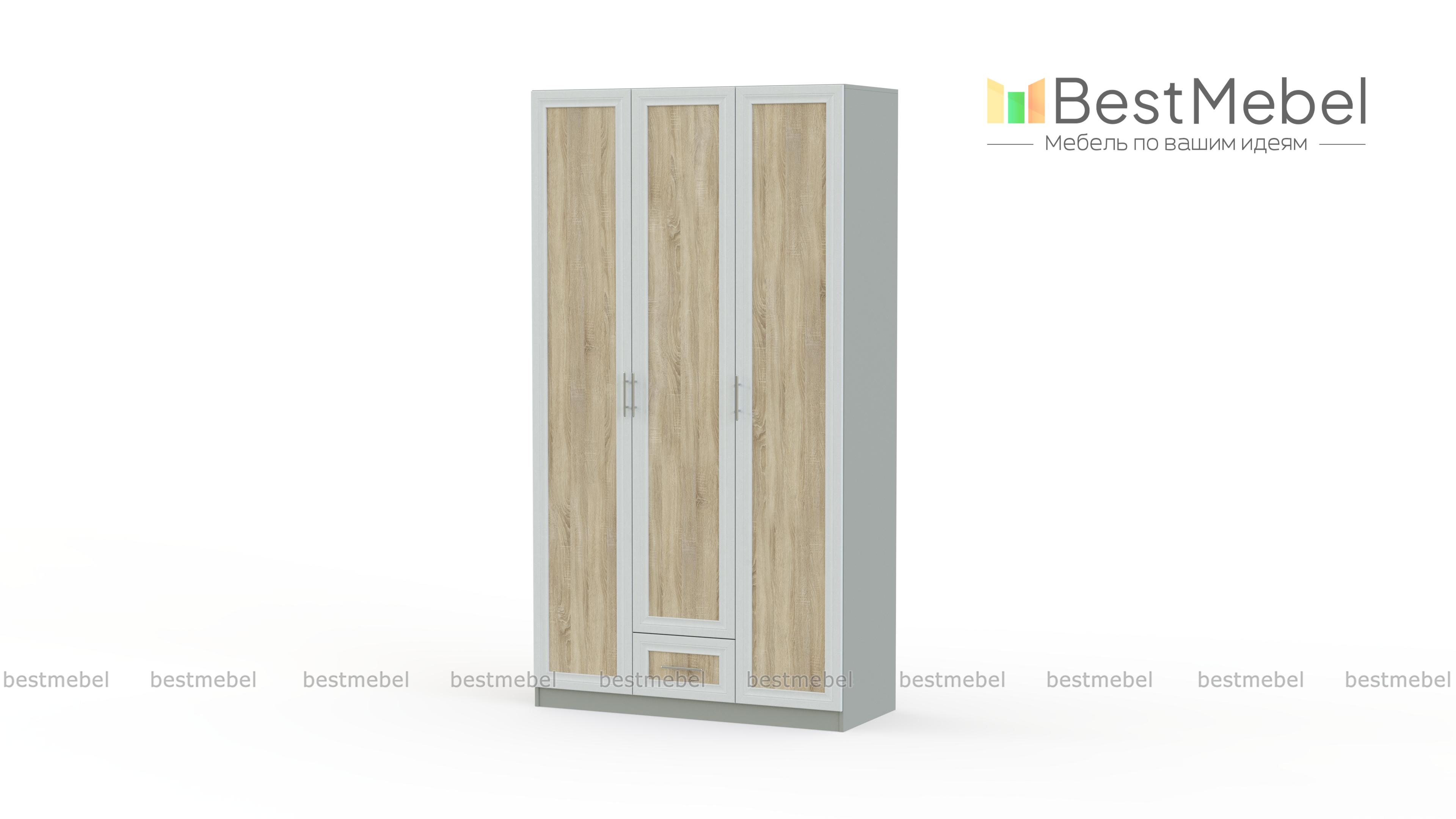 Распашной шкаф Крона 13 BMS отличается строгой элегантностью и контрастным цветовым решением в древесных тонах. Трехдверная модель с рамочными фасадами оборудована платяным отделением со штангой и отделением с полками, выдвижным ящиком для мелких вещей. Практичные средние габариты позволят без труда вписать шкаф как в просторные, так и в небольшие помещения. Купить распашной шкаф Крона 13 BMS, надежный и долговечный, вы сможете в нашем интернет-магазине.