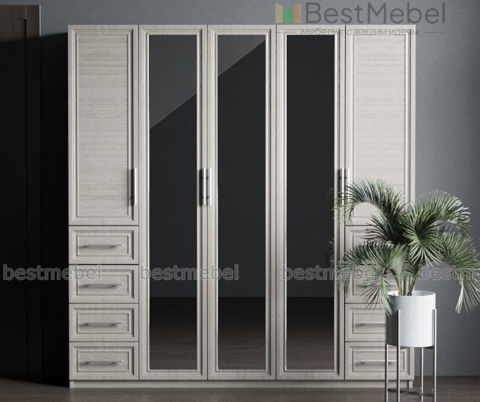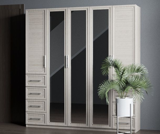 Распашной шкаф Крона 19 BMS станет незаменимым в интерьере просторной спальни или гардеробной благодаря редкой вместительности и трем зеркальным дверцам в центральной части. Крупногабаритная конструкция отличается надежностью и визуальной легкостью благодаря светлым рамочным фасадам древесных тонов. Внутреннее наполнение из двух платяных отделений, двух бельевых секций и выдвижных ящиков позволит бережно разместить предметы гардероба. Купить распашной шкаф Крона 19 BMS, подобрав необходимые параметры, вы сможете в нашем интернет-магазине.