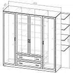 Распашной шкаф Милена 6 BMS отличается крупными габаритами и классическим дизайном. Четырехдверная модель с традиционными рамочными фасадами выполнена в насыщенных древесных тонах, центральные створки – зеркальные. Удобная система хранения для постельного белья и одежды включает в себя вместительное платяное отделение со штангой и бельевые полки, а также два широких выдвижных ящика. Купить распашной шкаф Милена 6 BMS для меблировки просторной спальни или прихожей вы сможете в нашем интернет-магазине.