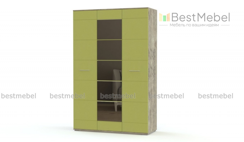 Распашной шкаф Ненси BMS отличается ярким дизайном, который превращает привычный предмет меблировки в элемент дизайна современной квартиры. Корпус шкафа в натуральных древесных тонах скомбинирован с цветным фрезерованным фасадом, декорированным по центру зеркальными вставками. Трехдверная модель имеет удобные средние габариты и оборудована просторными внутренними отделениями для хранения гардероба и постельных принадлежностей. Купить распашной шкаф Ненси BMS приглашаем в наш интернет-магазин.