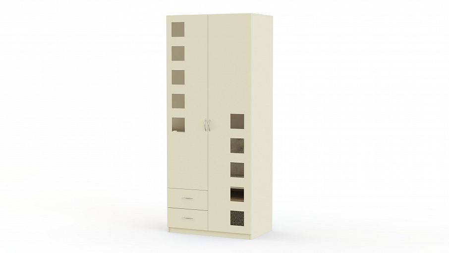Распашной шкаф Паулина 29 BMS компактен, но вместителен за счет высоты и станет отличным выбором для меблировки небольших помещений. Двухдверная модель с просторным платяным отделением дополнена парой выдвижных ящичков для хранения мелочей в нижней части. Шкаф выполняется в светлых оттенках на выбор и декорирован по фасаду квадратными зеркальными накладками. Купить распашной шкаф Паулина 29 BMS по доступной цене вы всегда сможете в нашем интернет-магазине.