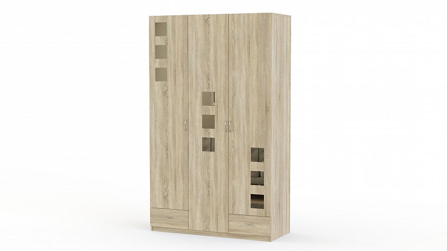Распашной шкаф Паулина 39 BMS имеет традиционную, проверенную временем конструкцию, но смотрится актуально благодаря лаконичному фасаду с геометричным зеркальным декором. Трехдверная модель оборудована отделением со штангой, бельевыми полками и двумя выдвижными ящиками для хранения мелочей. Качественная фурнитура станет гарантией комфортного пользования и долговечности. Купить распашной шкаф Паулина 39 BMS приглашаем на сайт нашего интернет-магазина.