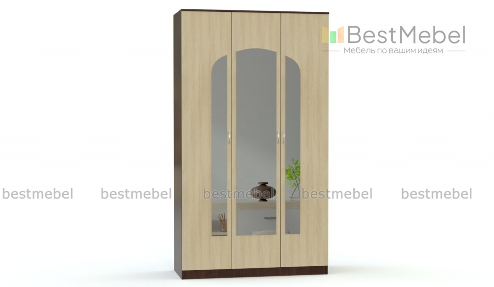Распашной шкаф Светлана 19 BMS представляет собой классическую модель, выполненную в универсальном сочетании древесных оттенков, которая легко впишется в интерьер квартиры-студии или просторной спальни. Трехдверный шкаф оборудован вместительным отделением со штангой и секцией с открытыми полками для постельного белья и прочего домашнего текстиля. Декоративные зеркала на фасадах зрительно расширяют пространство и делают помещение просторнее. Купить распашной шкаф Светлана 19 BMS по привлекательной цене приглашаем в наш интернет-магазин.