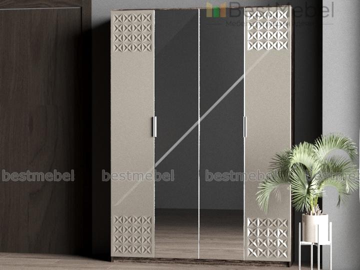 Шкаф 3D-11 BMS – вместительная и эффектная четырехдверная модель, которая сделает интерьер спальни или гостиной запоминающимся. Корпус древесных тонов гармонично сочетается со светлым глянцем фасадов, декорированных роскошными текстурными вставками и зеркалами в полный рост. За распашными дверцами, оснащенными практичными профиль-ручками, располагаются платяное отделение со штангой и бельевое с полками. Купить шкаф 3D-11 BMS приглашаем по лучшей цене в наш интернет-магазин.