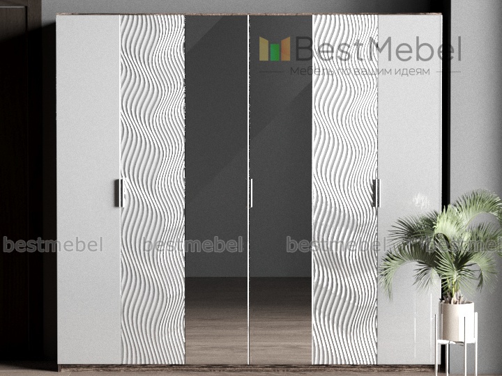Шкаф 3D-13 BMS поможет оборудовать просторную современную спальню или роскошную гардеробную. Крупногабаритная шестидверная модель отличается визуальной легкостью за счет светлого глянца фасадов с текстурными панелями и зеркальными дверцами в центральной части. Шкаф с темным корпусом древесных оттенков не только элегантен, но и на редкость вместителен. Два просторных платяных отделения и бельевое с полками позволят аккуратно разместить предметы гардероба. Купить шкаф 3D-13 BMS по лучшей цене приглашаем в наш интернет-магазин.