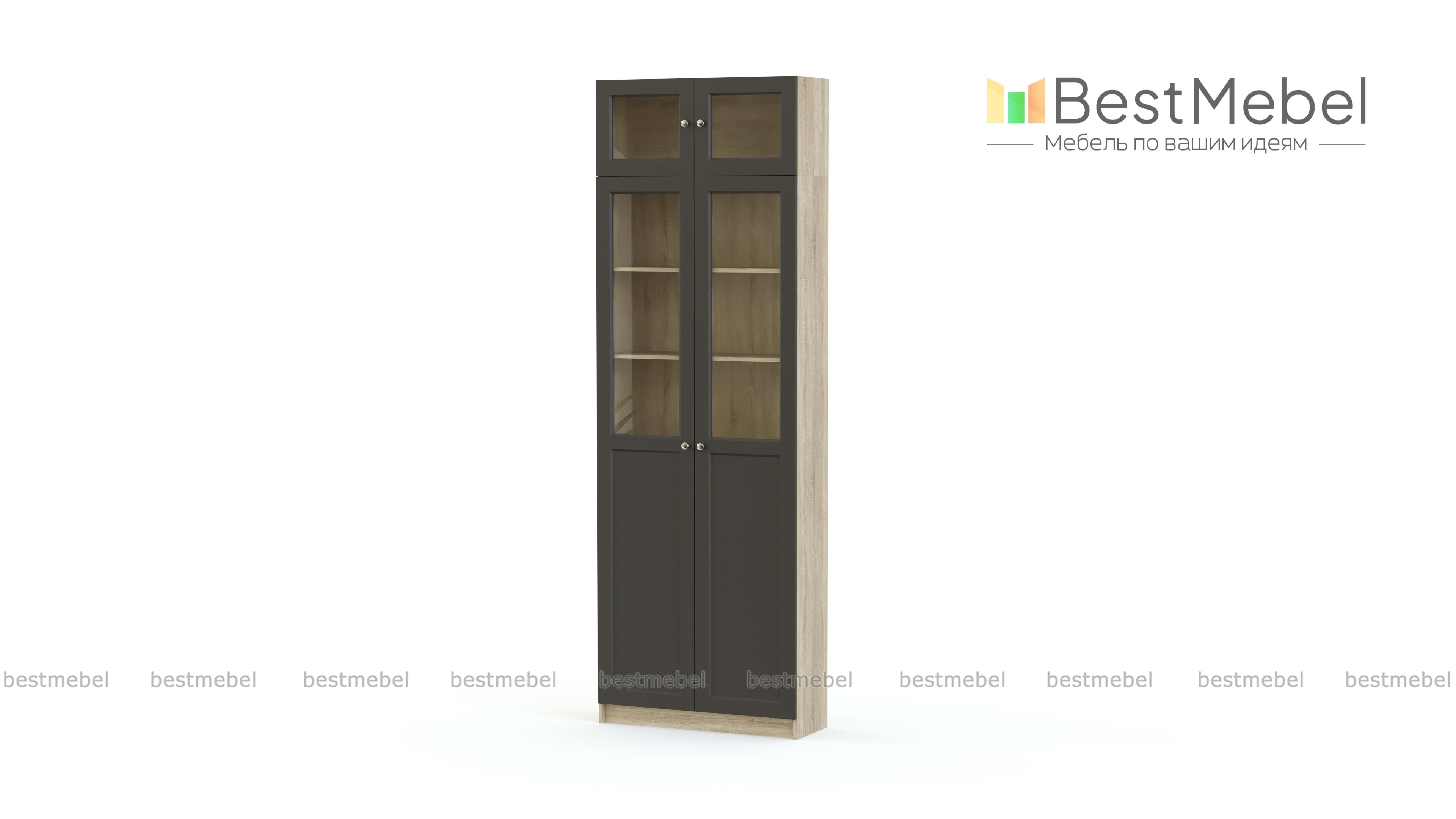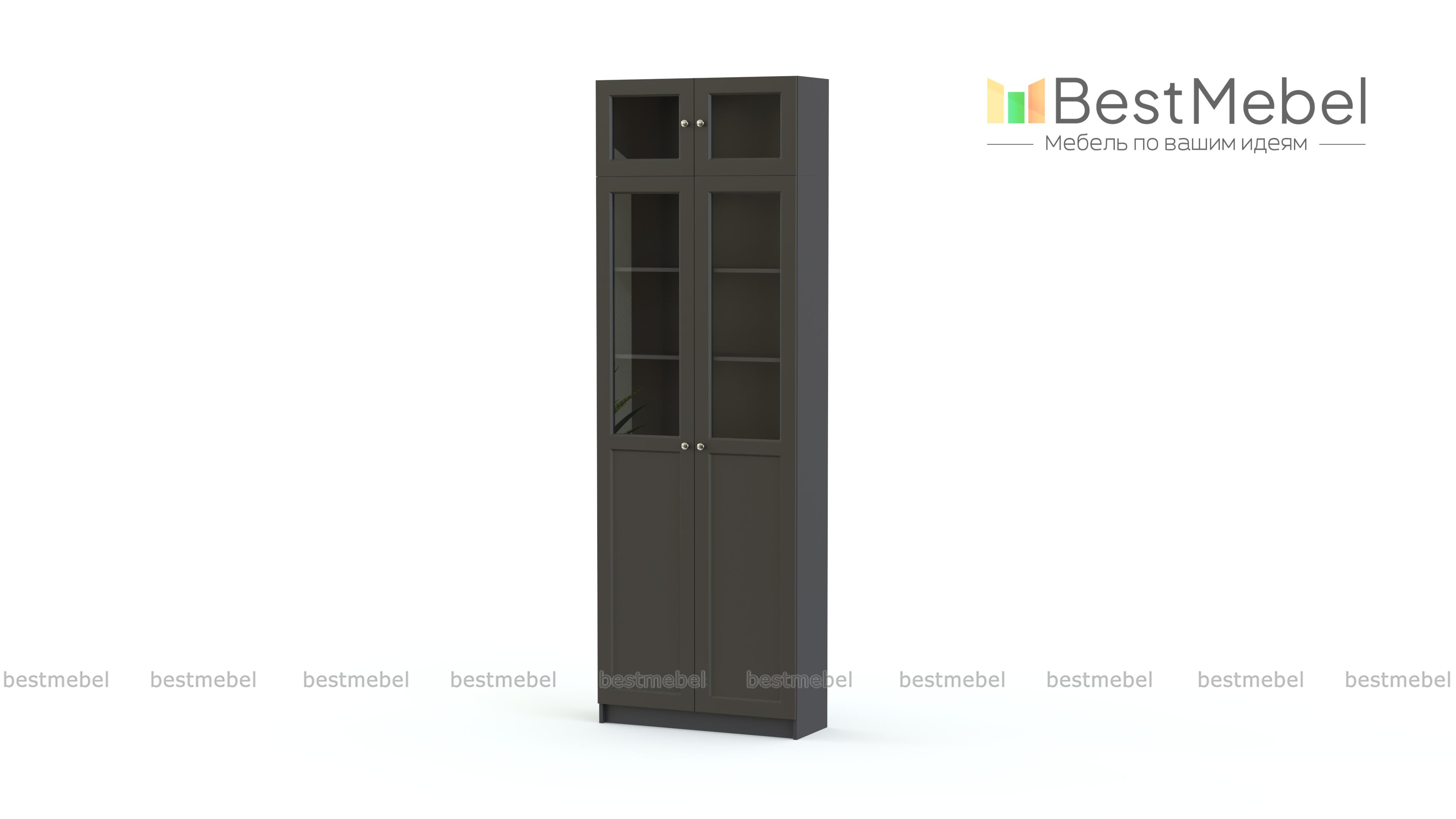 Шкаф Билли Billy 7 поможет вам разместить на виду или скрыть книги, посуду, папки с документами и полезные мелочи. Двухдверный распашной шкаф оборудован глухими и застекленными полками, а эффективно использовать пространство позволит дополнительная антресольная секция. Классический дизайн фасадов и нейтральная расцветка хорошо смотрятся в большинстве современных интерьеров. Купить шкаф Билли Billy 7 для гостиной, кабинета или столовой вы сможете в нашем интернет-магазине. Выбирайте мебель в стиле IKEA (ИКЕА) от производителя BestMebelShop!