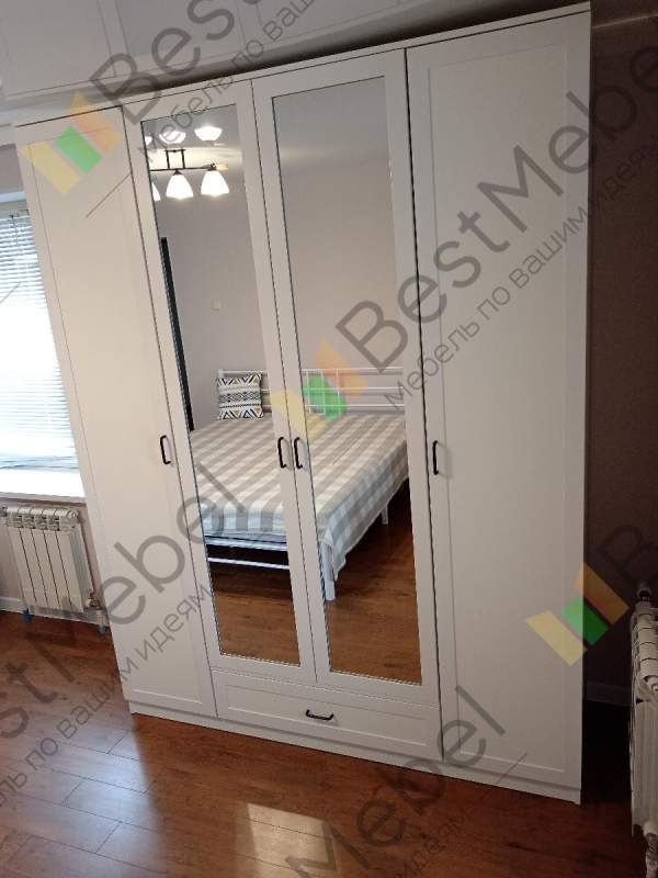 Шкаф для одежды 4-х дверный Вентура ИД 01.70 BMS отличается вместительностью и гармоничным сочетанием современных и классических черт в оформлении. Элегантная модель со светлыми рамочными фасадами декорирована контрастным карнизом, черными ручками-скобами и зеркалами с решеткой. За распашными дверцами находятся полки и просторное отделение со штангой. В основании – выдвижной ящик для мелочей. Купить шкаф для одежды 4-х дверный Вентура ИД 01.70 BMS по лучшей цене вы сможете в нашем интернет-магазине.