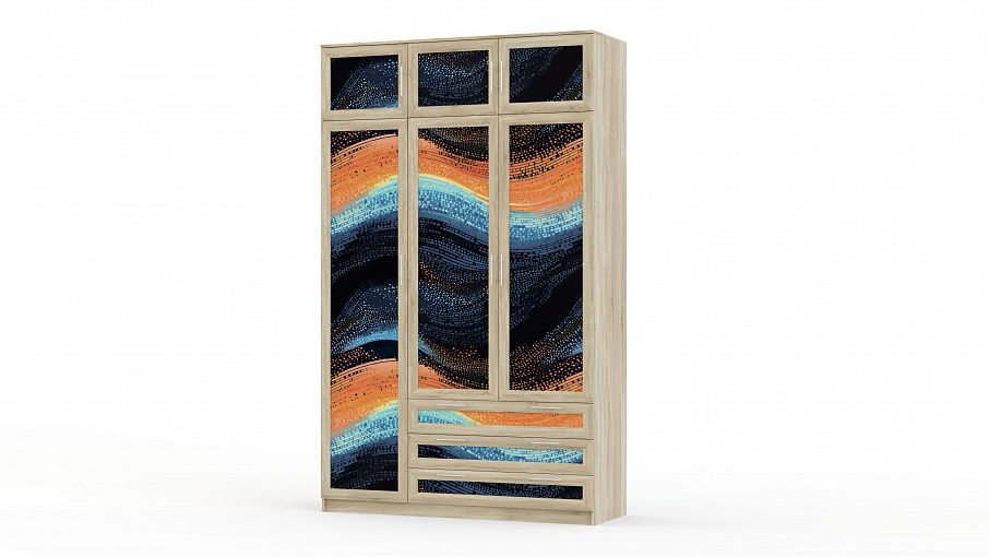 Шкаф Комфорт Люкс 3-5 BMS компактно разместит ваши вещи и добавит интерьеру красок. Традиционно оформленные рамочные фасады из МДФ и ламинированной плиты смотрятся ярко и нестандартно с фотопечатью на вставках. За тремя распашными дверцами скрыты бельевые полки и штанга, а дополняют конструкцию три просторных выдвижных ящика и антресоль для хранения несезонных вещей. Купить шкаф Комфорт Люкс 3-5 BMS вы сможете в нашем интернет-магазине, по желанию изменив цвет и размеры.