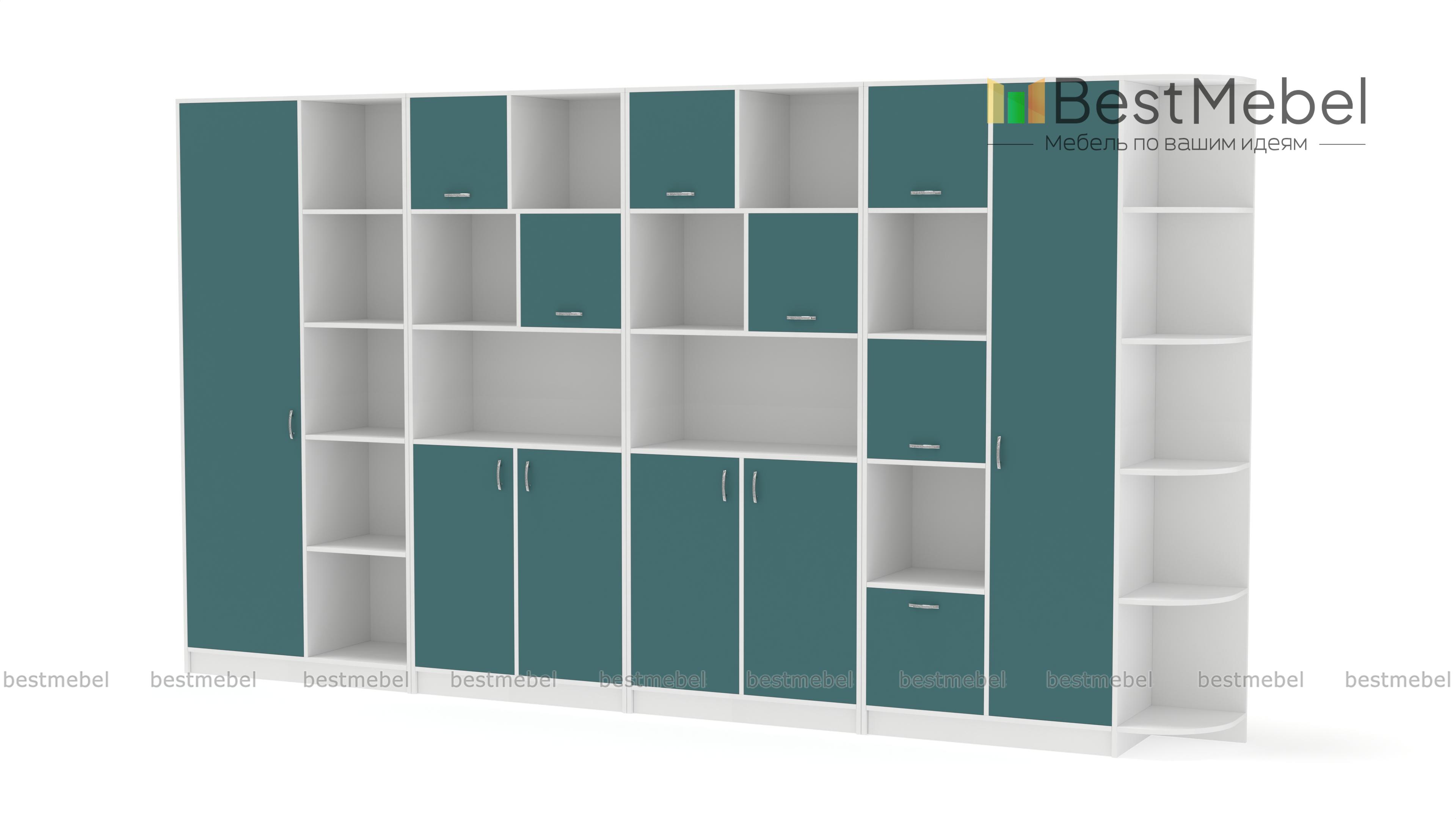 Шкаф Перси 3 BMS отличается крупными габаритами и практичной конструкцией из нескольких функциональных модулей. Продуманная система хранения включает в себя открытые полки, распашные отделения и угловой радиусный элемент. Комбинированный шкаф подходит для меблировки дома и офиса, помогая разместить рабочие материалы, бытовые вещи, одежду и предметы декора. Купить шкаф Перси 3 BMS, выполненный в сочетании светлых древесных тонов и насыщенного зеленого, приглашаем к нам в интернет-магазин.